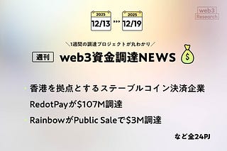 香港を拠点とするステーブルコイン決済企業RedotPayが$107M調達、RainbowがPublic Saleで$3M調達、など全24PJ【資金調達PJまとめ】
