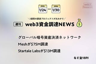 グローバル暗号資産決済ネットワークMeshが$75M調達、Startale Labsが$13M調達、など全18PJ【資金調達PJまとめ】