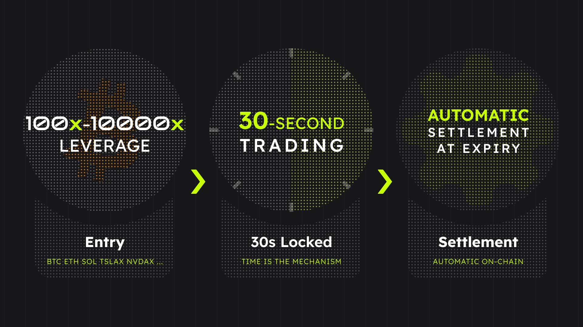 一般的なパーペチュアル取引所と異なりファンディングレートは存在せず、全ポジションは30秒で自動決済される「価格予測型」に近い設計。