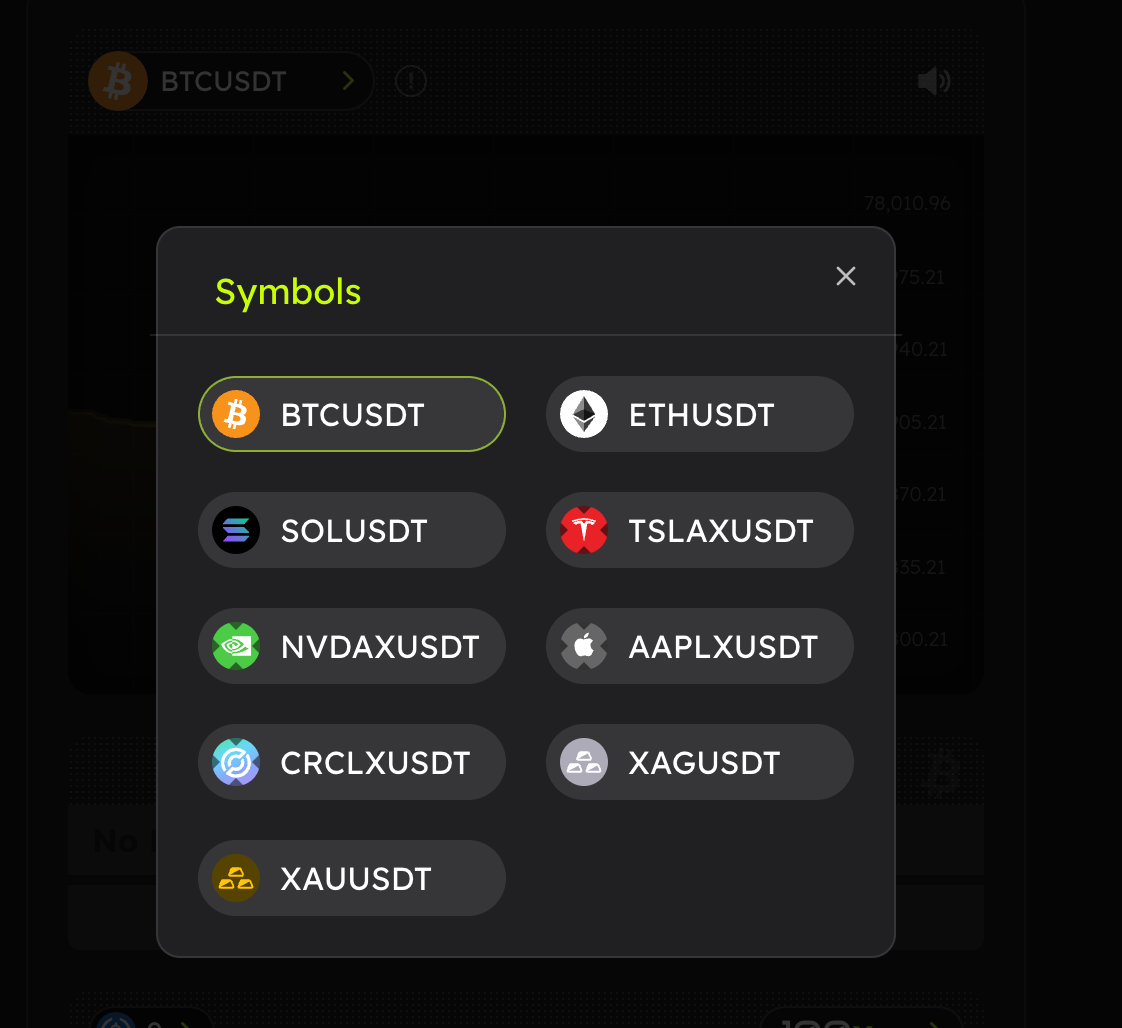 100倍から10,000倍のレバレッジを提供し、30秒の固定タイマーで建玉が自動決済されるという超短期サイクルであることが特徴です。(ただし、5,000倍~10,000倍はホワイトリスト制で誰もが利用できないようになっています。)