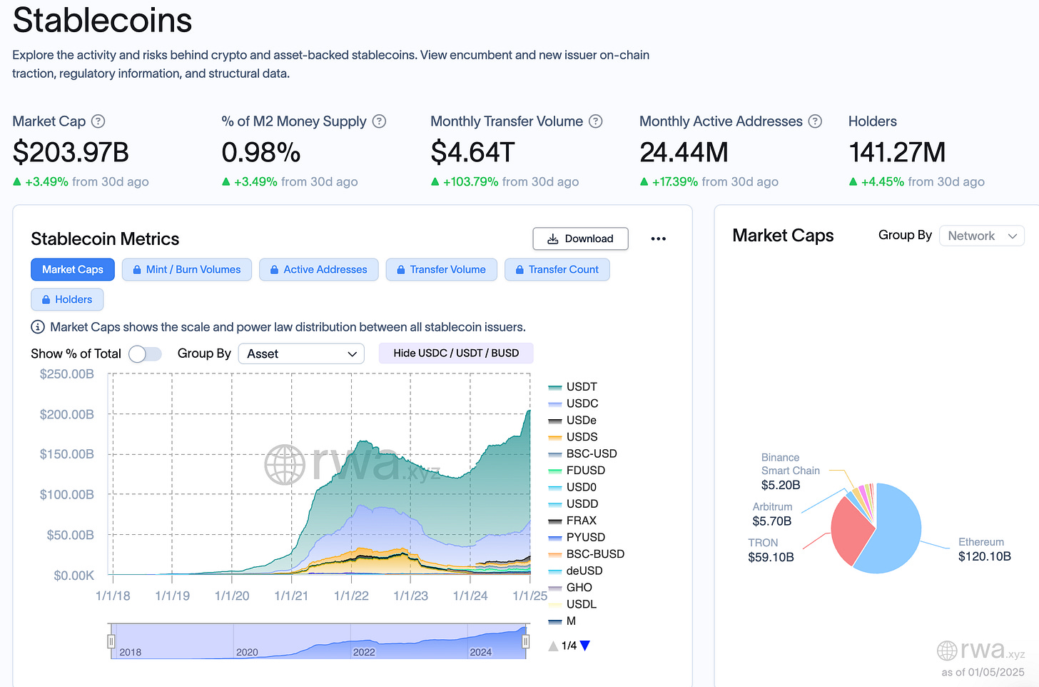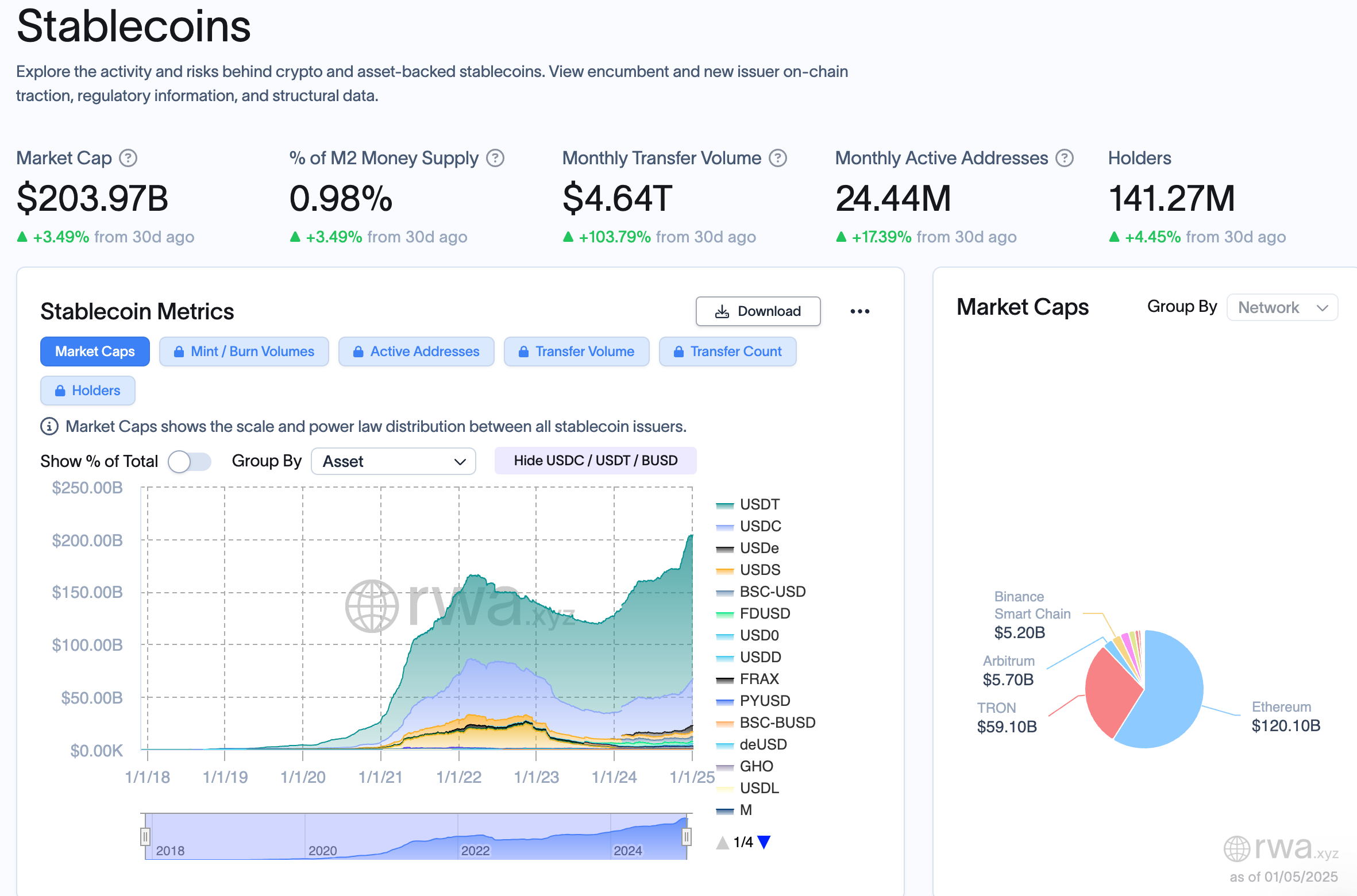 現時点のステーブルコインのマーケットキャップは$203Bであり、右肩上がりで伸び続けています。