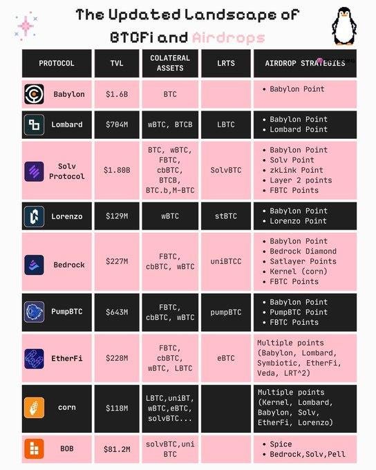 こちら少し前のTVLですが、すでにBabylonの周りにLRTプロトコルが多くできており、TGE間近のプロジェクトも多いです。EigenLayerがTGEし周辺のLRTも続々とTGEして盛り上がったように、2025年はこの辺りが一斉にTGEする年になりそうです。