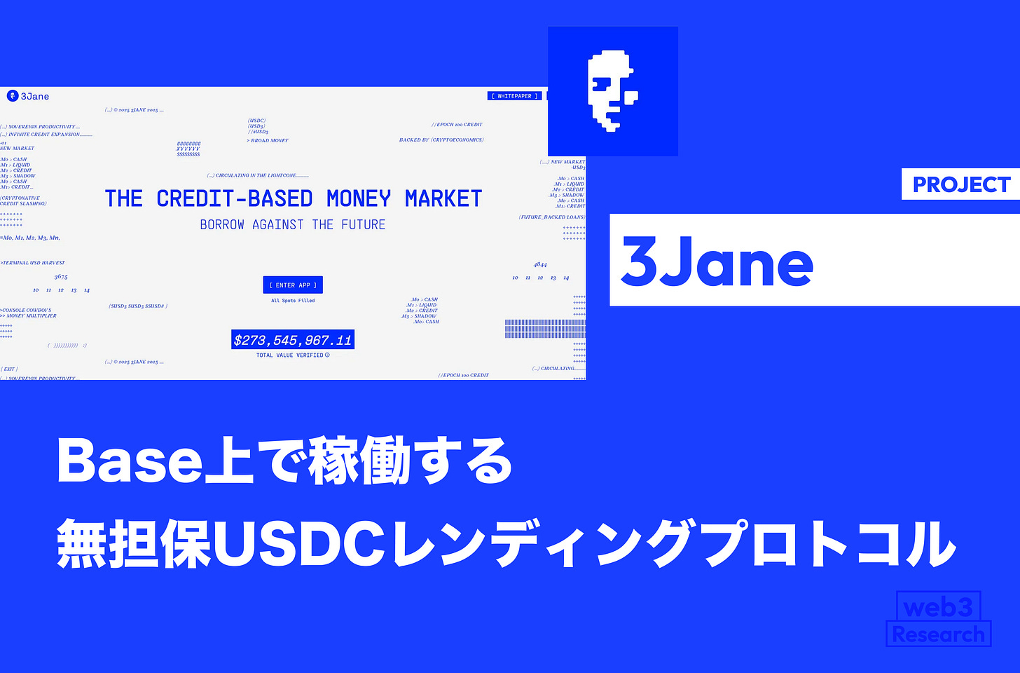 Project【3Jane】 Base上で稼働する無担保USDC レンディングプロトコル / オンチェーンとオフチェーン情報をzkTLSを利用し信用スコアを算出 / デフォルト時には法的拘束力を持つ / @3janexyz過剰担保型の常識を変革する可能性を持つ。mitsuiJun 09, 2025∙ Paid3Shareおはようございます。web3リサーチャーのmitsuiです。今日は「3Jane」についてリサーチしました。🟦3Janeとは?⚙️詳しい仕組み🚩変遷と展望💬法的拘束力を持つDeFiの可能性SubscribeThis post is for paid subscribersSubscribeAlready a paid subscriber? Sign inPreviousNext