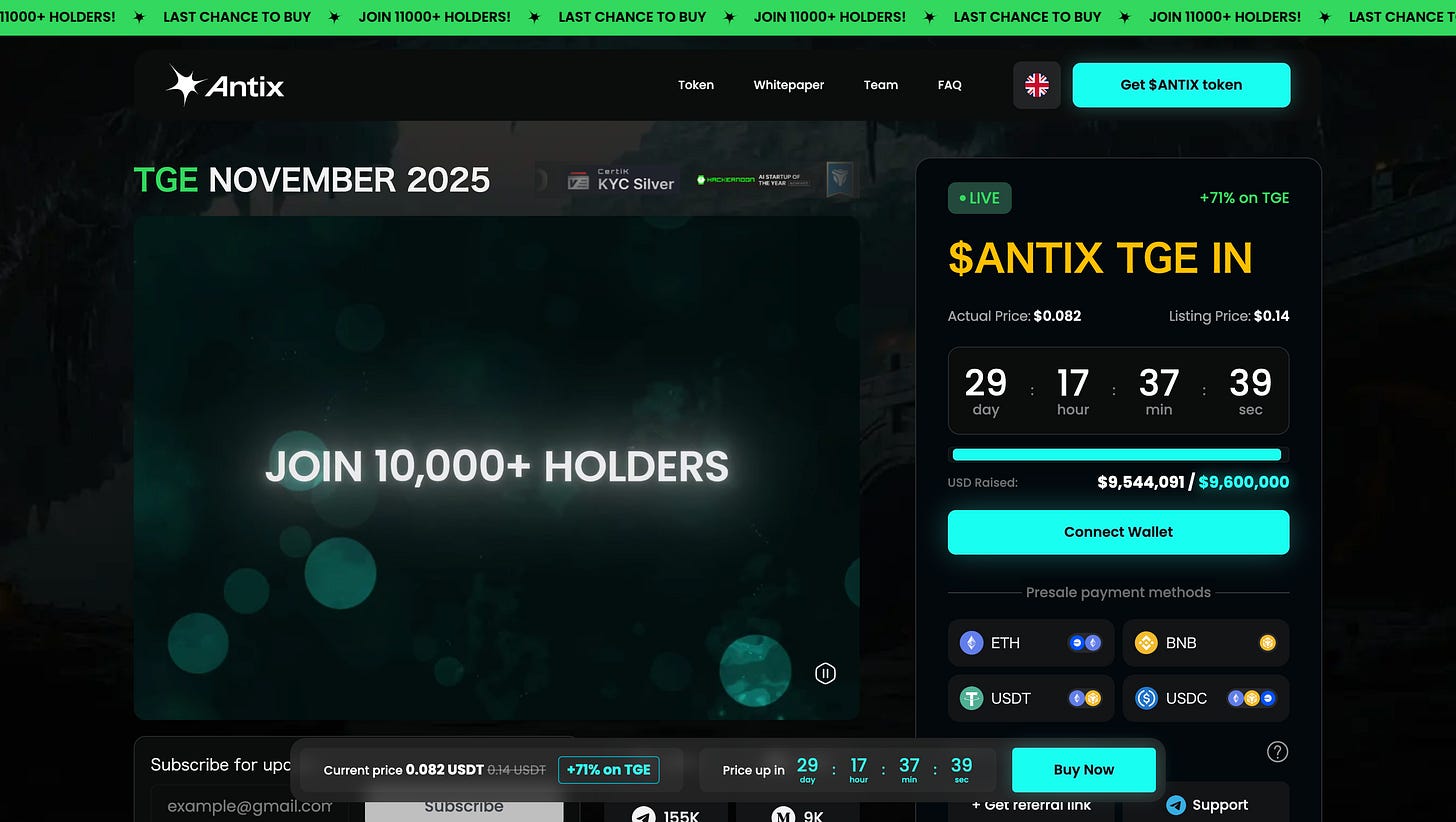 2025年10-11月:$ANTIXトークン公開セール/TGEを予定。11月にTGE予定。