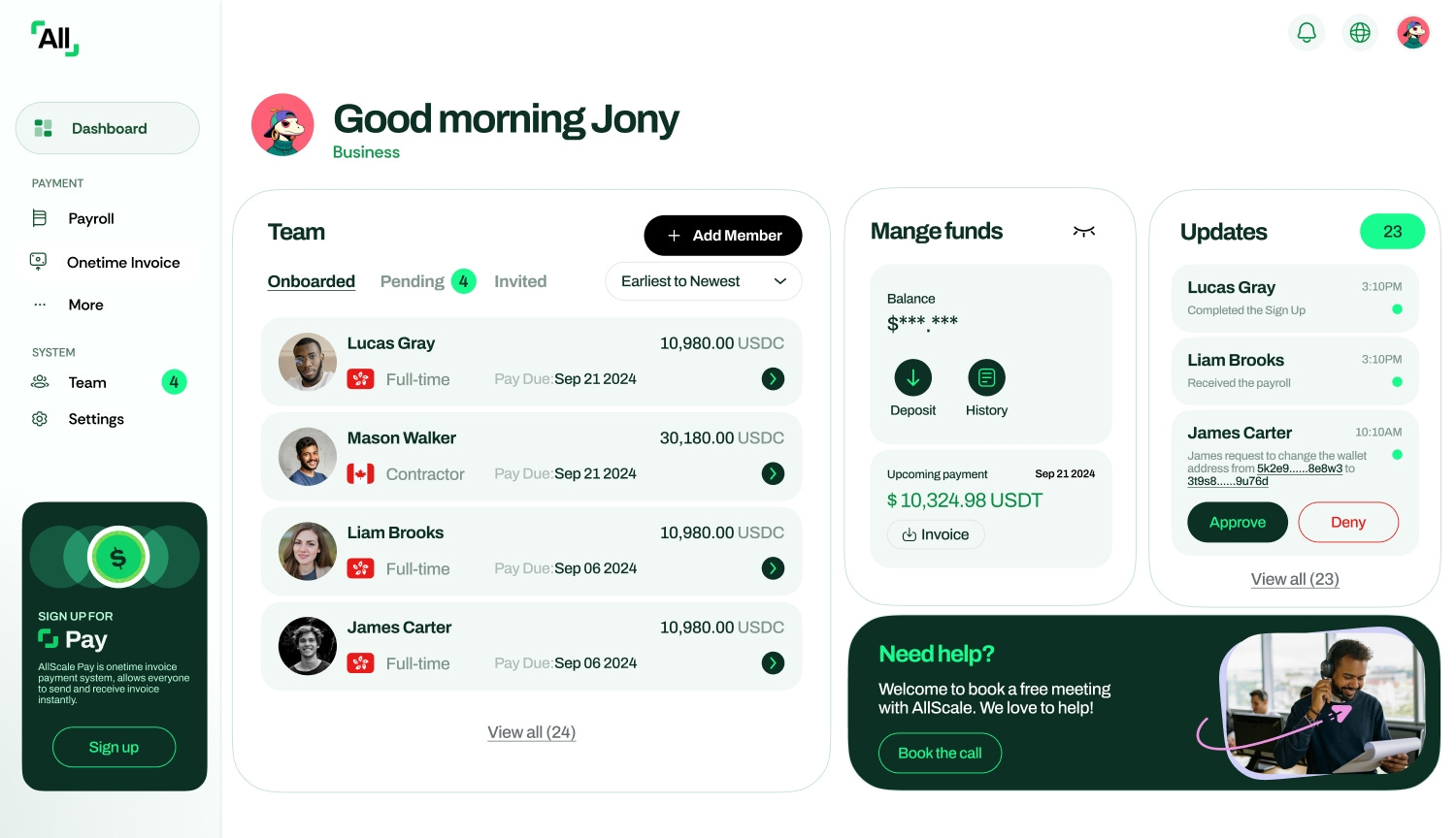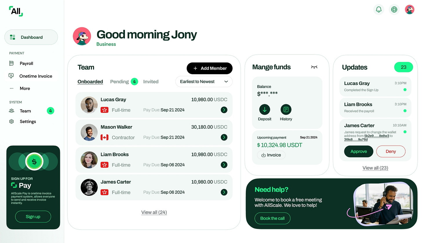 【AllScale】ステーブルコインを活用したフィンテックプラットフォーム / 請求書発行・グローバル給与・ソーシャルコマースを一体提供 / @allscaleio