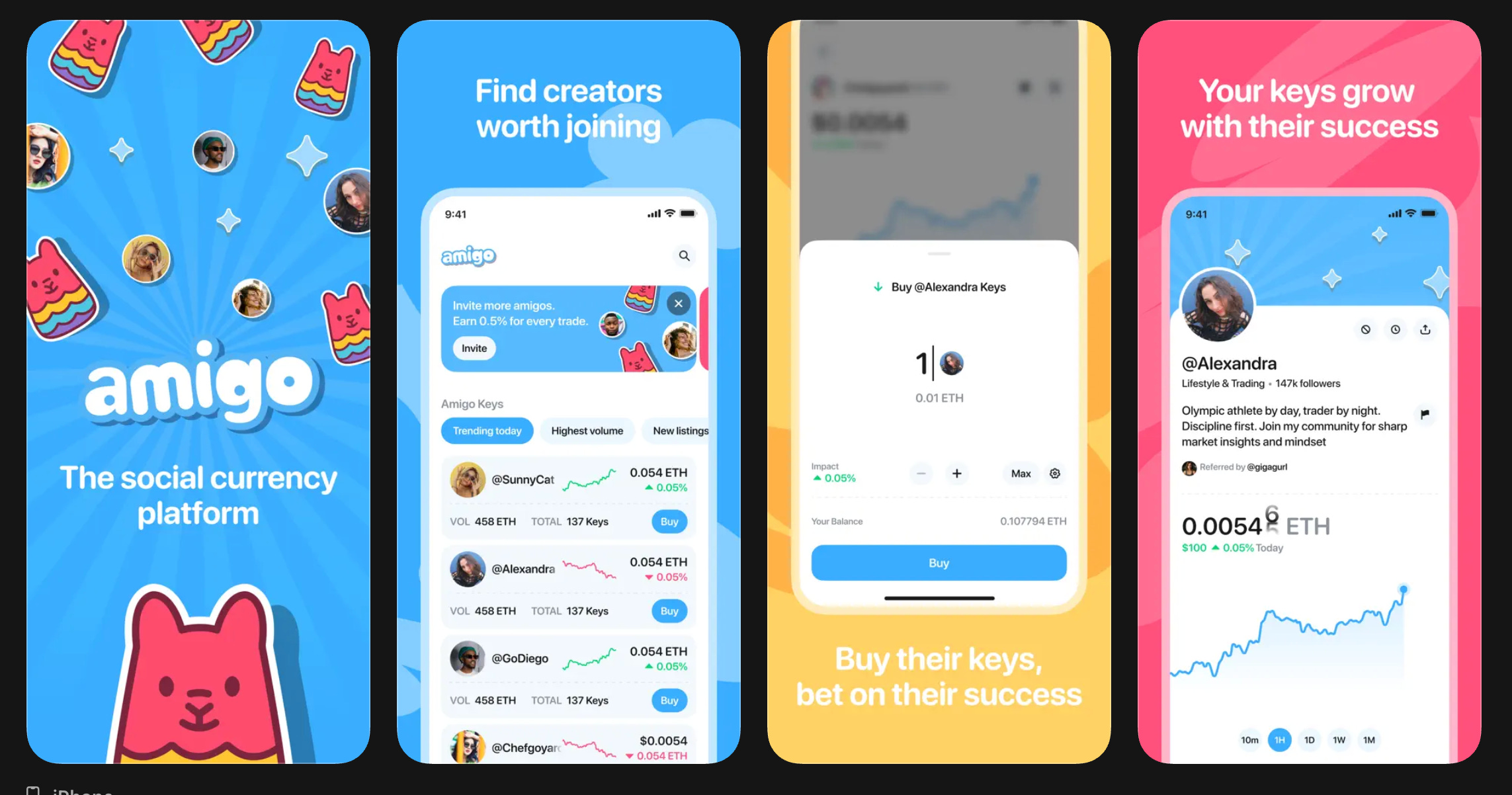 画面デザインも若年層に親しまれるポップで直感的なものになっており、Crypto特有の難解な用語は排除されています。実際、Amigo側は「ほとんどのcryptoアプリはcrypto用語を喋りすぎる。我々はそうしない。クリエイターがいる場所(既存SNSの世界観)に合わせる」と述べています。