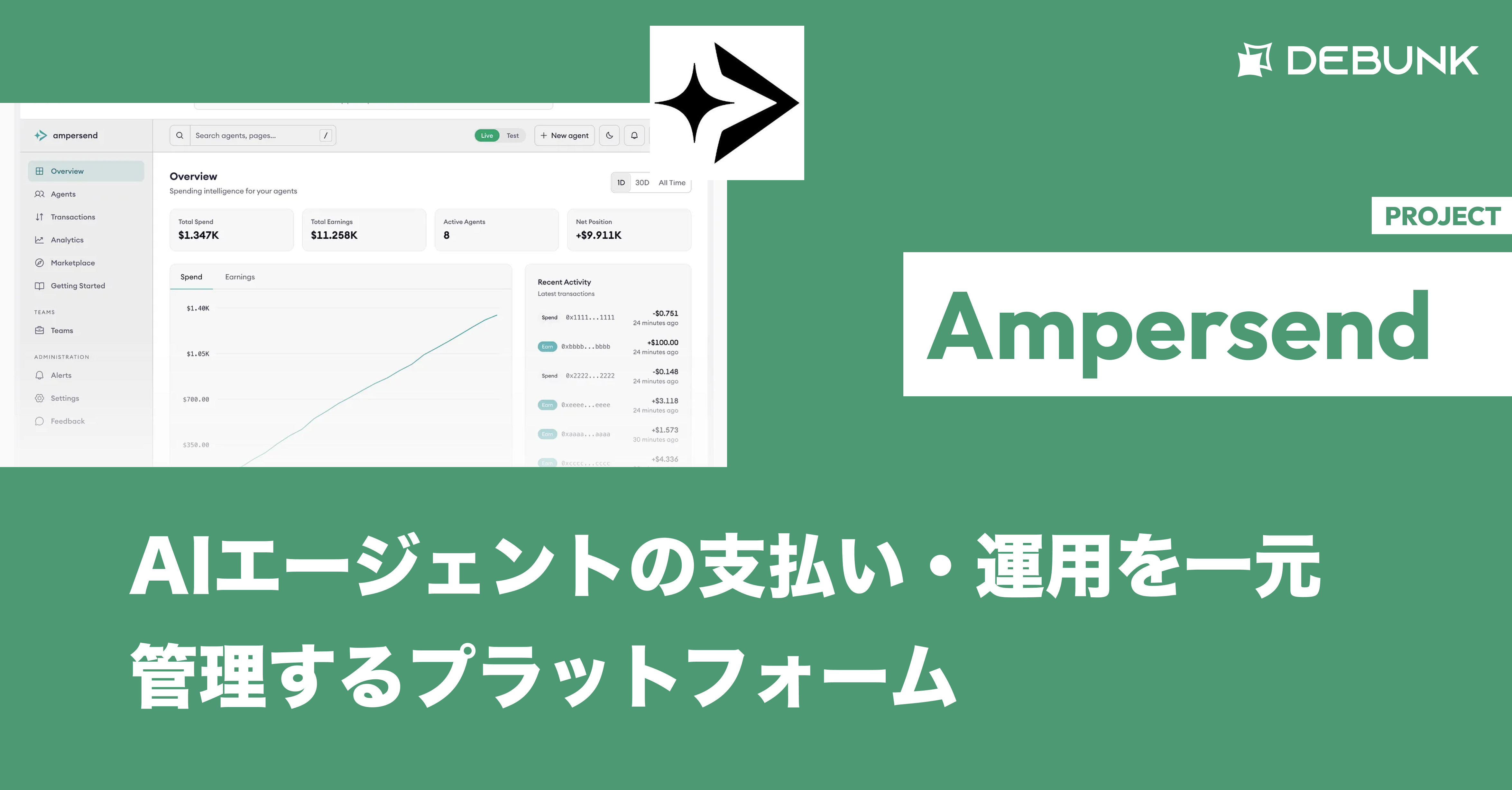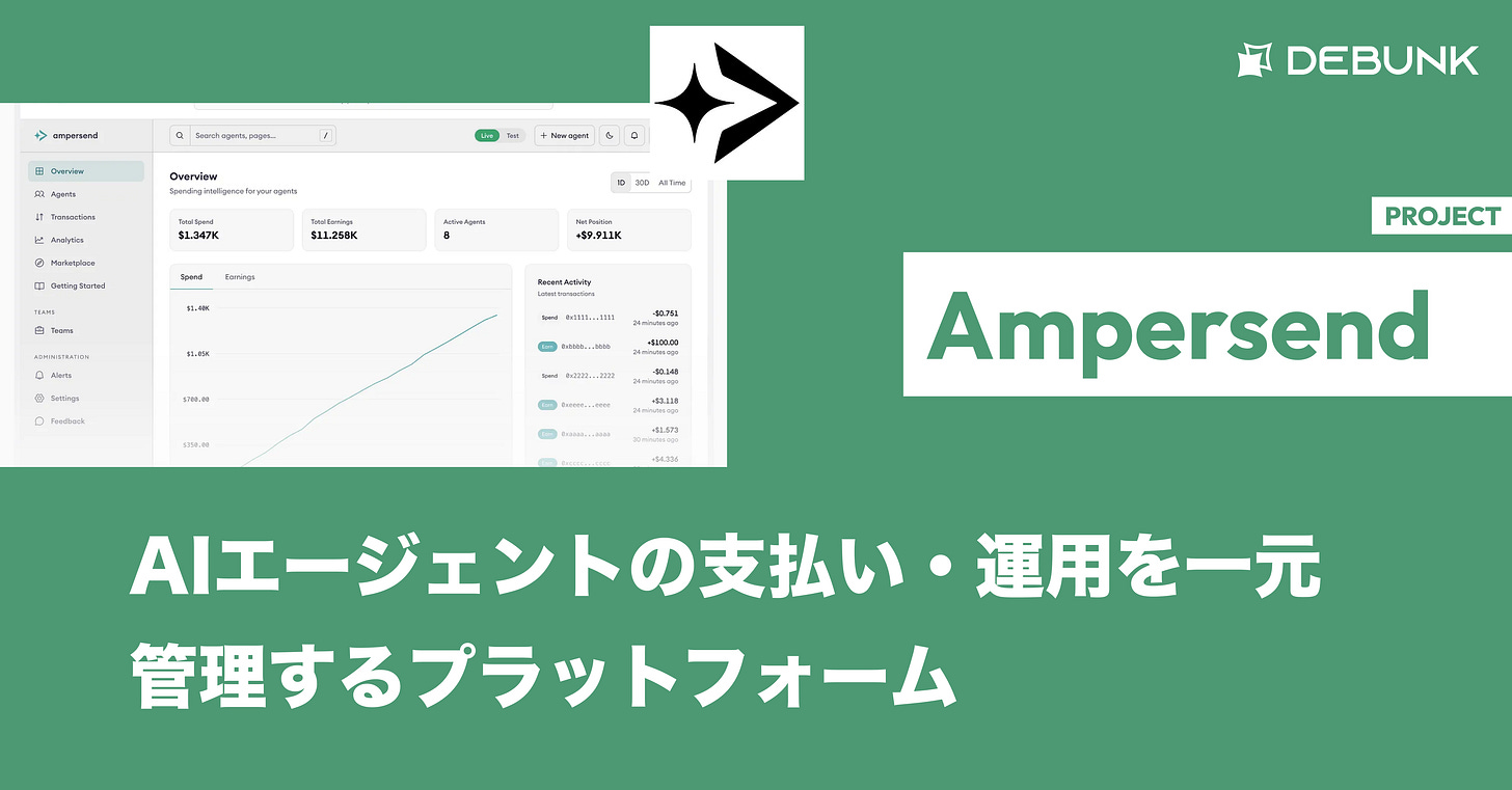 「Ampersend」は、分散型インデクシングプロトコル「The Graph」の創設チームであるEdge & Nodeが開発した、AIエージェントの支払い・運用を一元管理するプラットフォームです。