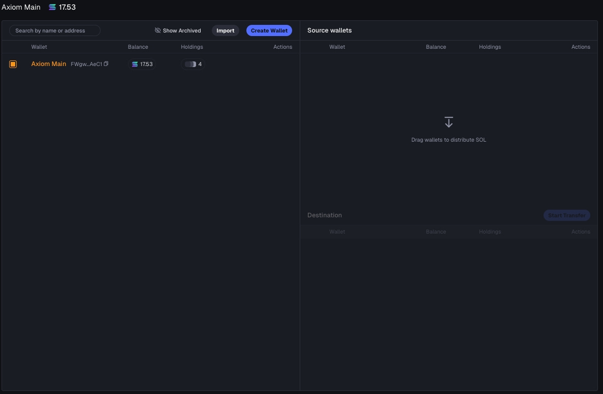ウォレット連携とマルチウォレット管理:独自のAxiomウォレットを提供するほか、複数のSOLウォレットアドレスを接続して一括管理(マルチウォレット対応)できます。ユーザーは一つのダッシュボードで複数ウォレットの残高、建玉、取引履歴を確認でき、用途別にウォレットにラベル付け(例:「短期売買用」「長期保有用」など)して整理するといったことも可能です。