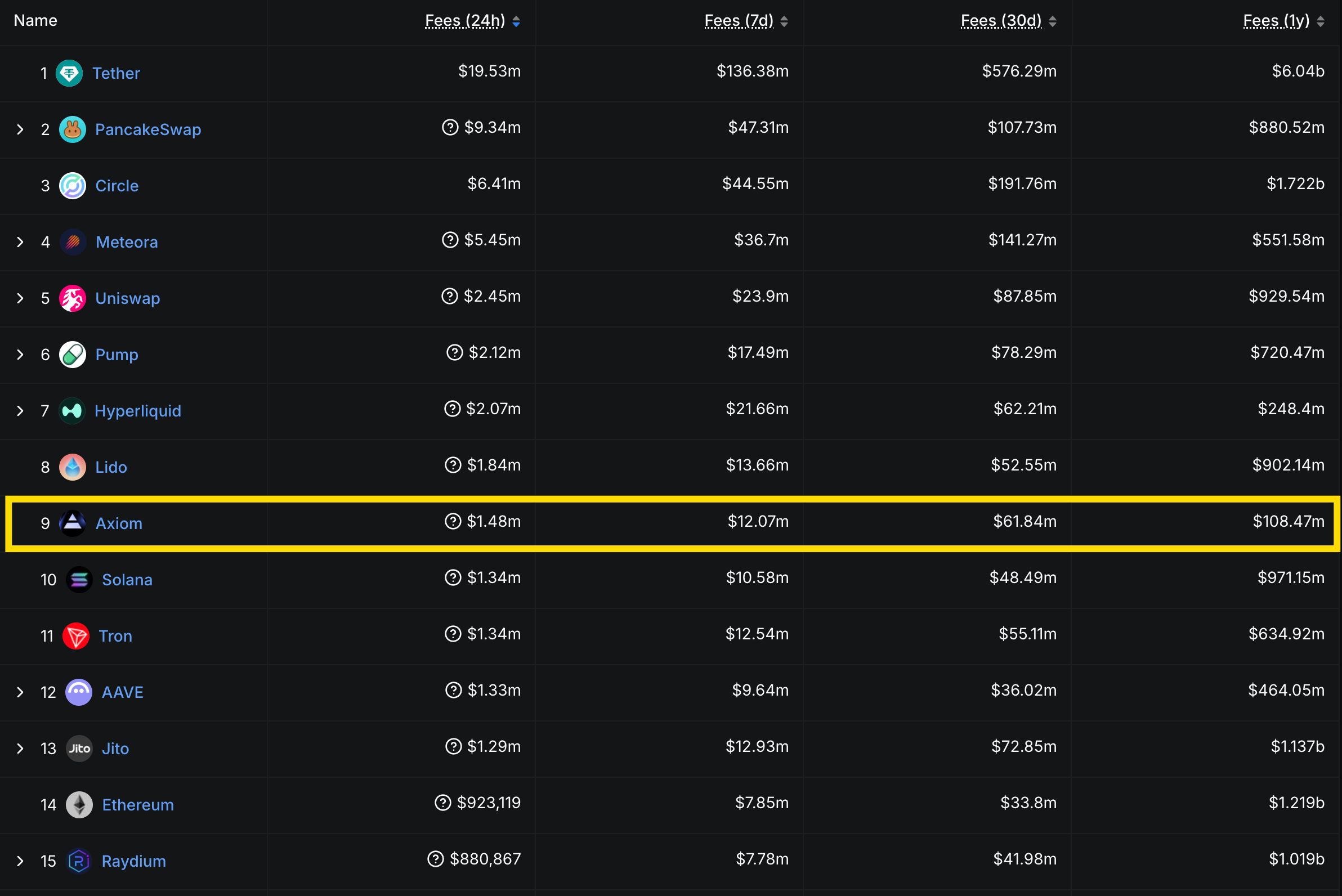 「Axiom」のとてつもない成長率と、トレーディングプラットフォームは一度バズるとあり得ないほどの収益を挙げられることが改めてわかりました。