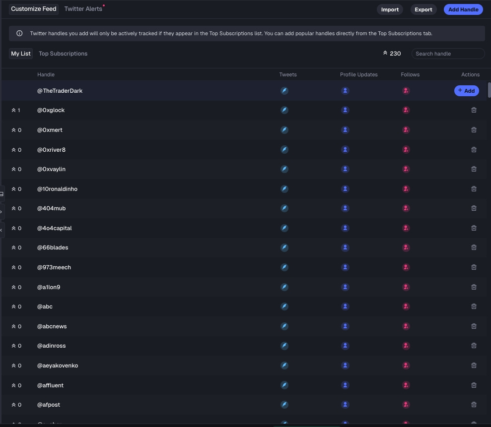 X連動:「Tweet Monitor」という機能では特定のTwitterアカウントの発言を監視し、関連する銘柄情報を即座に取得できるようになっています。プラットフォーム内に市場関連のTwitterフィードが埋め込まれており、ユーザーはチャートを見ながらリアルタイムの市場の声やニュースを同時にチェックできます。この機能は現在、取引量が5SOL以上のすべてのユーザーが利用できます。