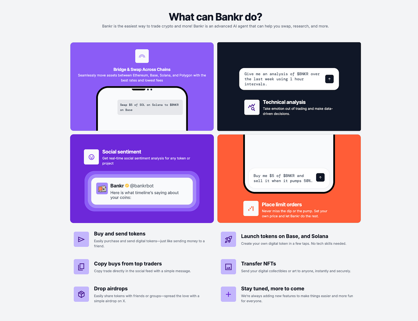 「Bankr」は2024年にFarcasterで最初のAIエージェントとして登場し、ユーザーがソーシャルフィードから直接コインを買える体験を提供しました。