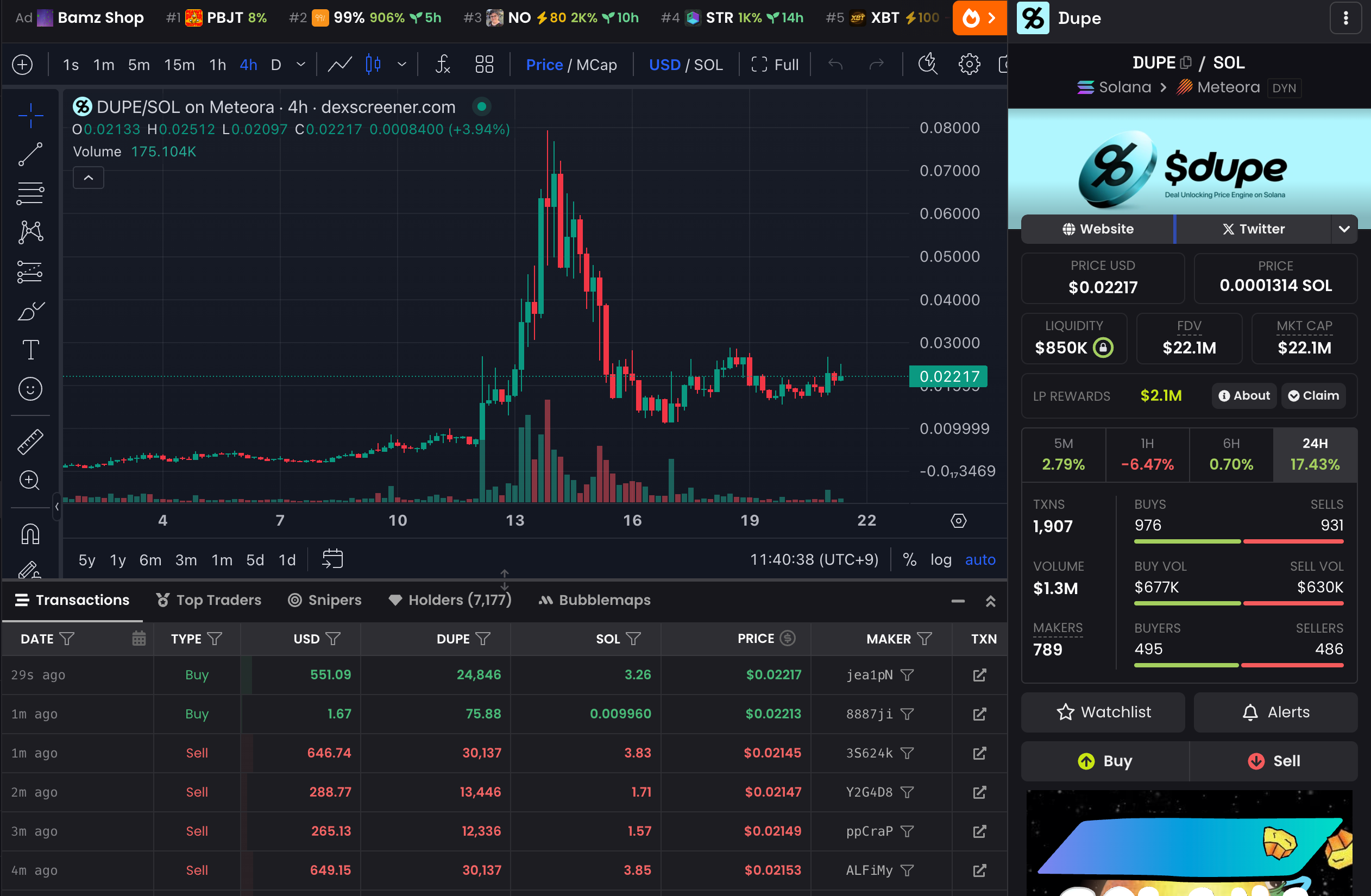 Dupe.comは月間アクティブユーザー100万人を抱えInstagramで37万フォロワーを持つ人気サービスですが、ある日ファンの一人が冗談半分で「$DUPE」というトークンをBelieve(当時Clout)上で発行しました。このDUPEトークンは完全なコミュニティ発のミームコインでしたが、思いのほか支持が集まり時価総額は392万ドル、ホルダー数約3,548人に達しました。