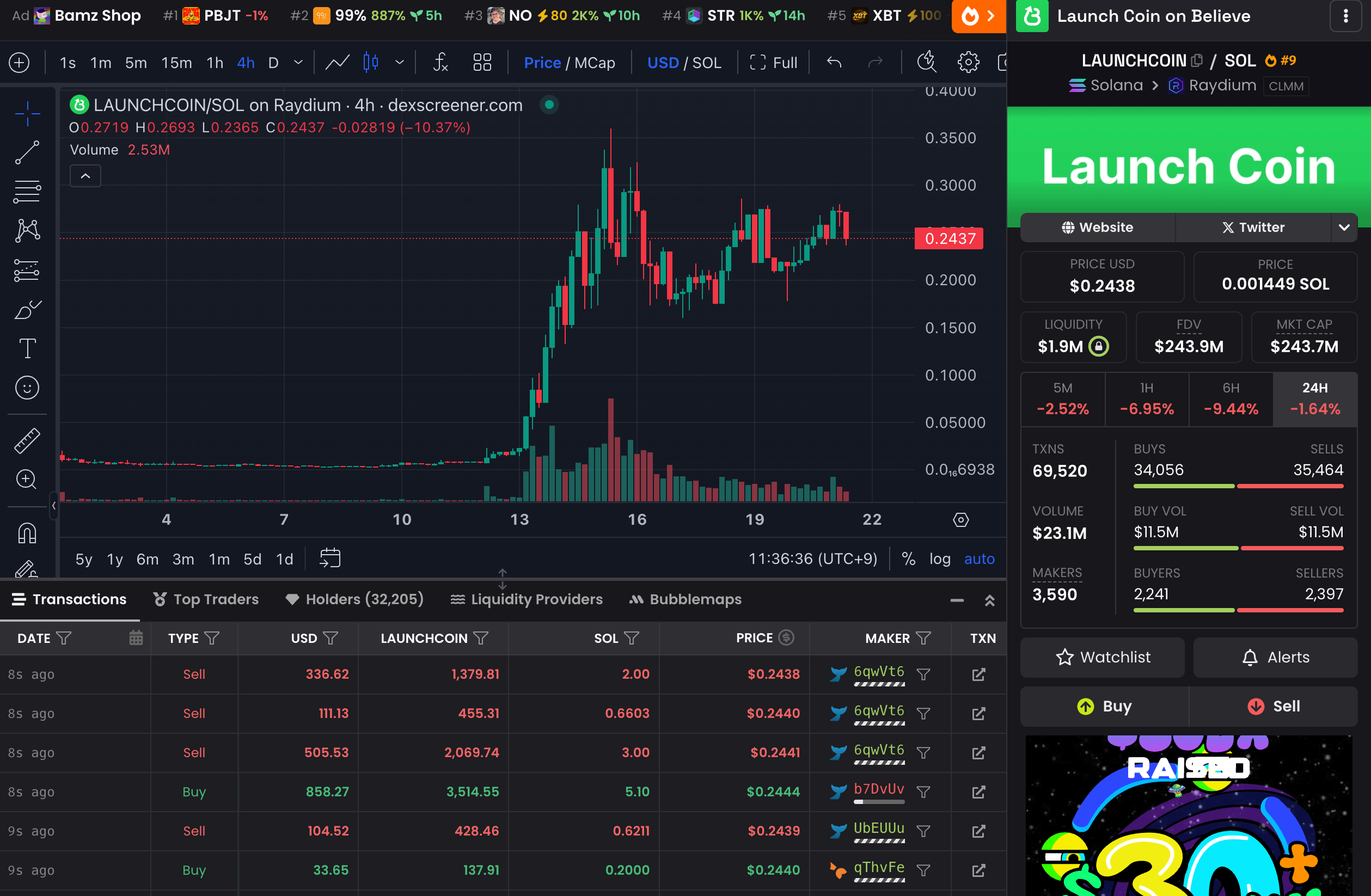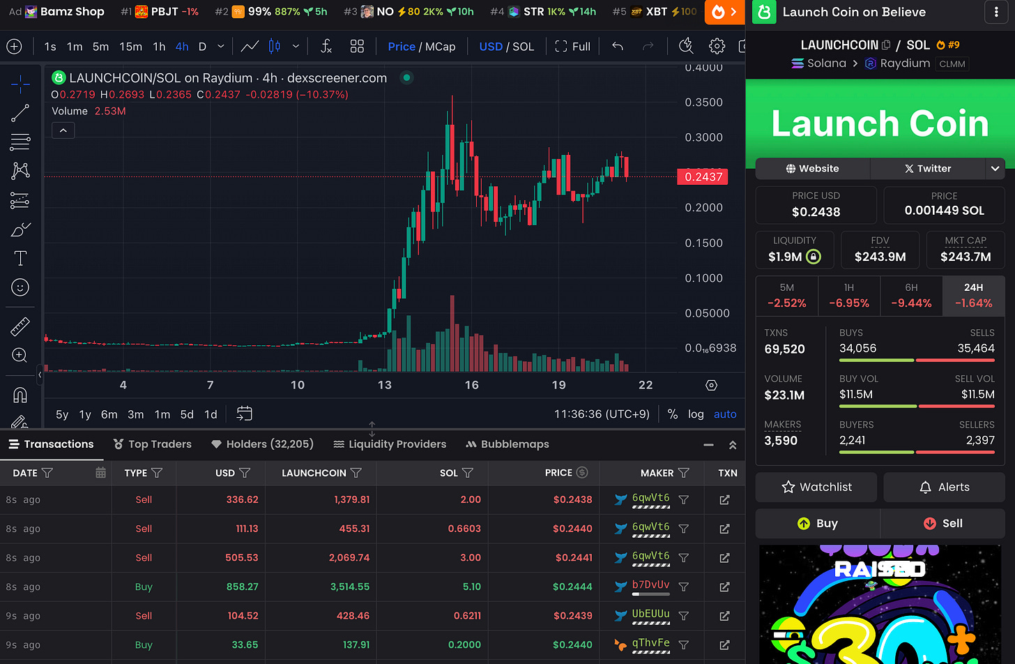 機能的にはPump.funに近いですが、独自のインセンティブやコミュニティ要素を打ち出し急速にユーザーを獲得しています。2025年5月時点で市場シェア約18%と、Believeと並ぶ新勢力となっています。BONKトークンの知名度を背景にした集客力が強みです。