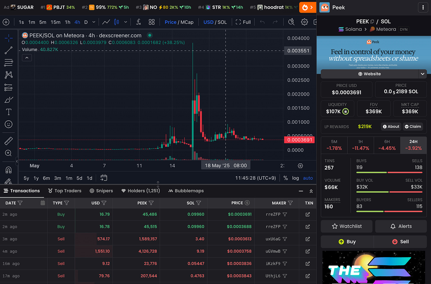 外部の熱心なユーザー(@casatay)がBelieveを通じて勝手に「Peek」名義のトークンを生成した形であり、このようにプロジェクト本人不在でも周囲がトークン化してしまうのはBelieveプラットフォームならではの現象と言えます。