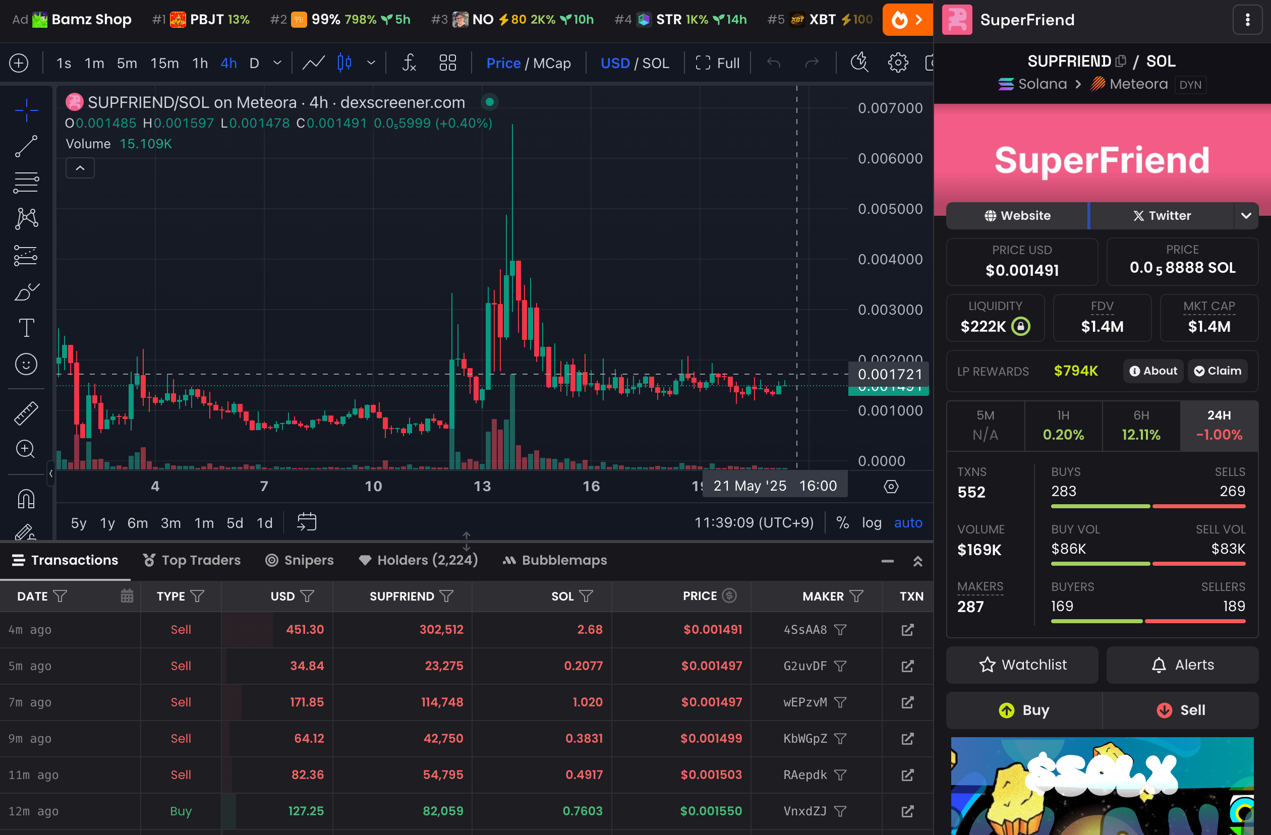 そして、あまりにも簡単にトークン発行ができてしまうので、これまた価値を失うトークンが乱立します。Believeアプリ内で資金が移動し、新トークンが出ては盛り上がりその後急落、が次々と繰り返されるというこれまでのトークンローンチパッドと同じ道を辿るのではないかと言われています。事実、ほとんどのトークンは価格が下落しています。