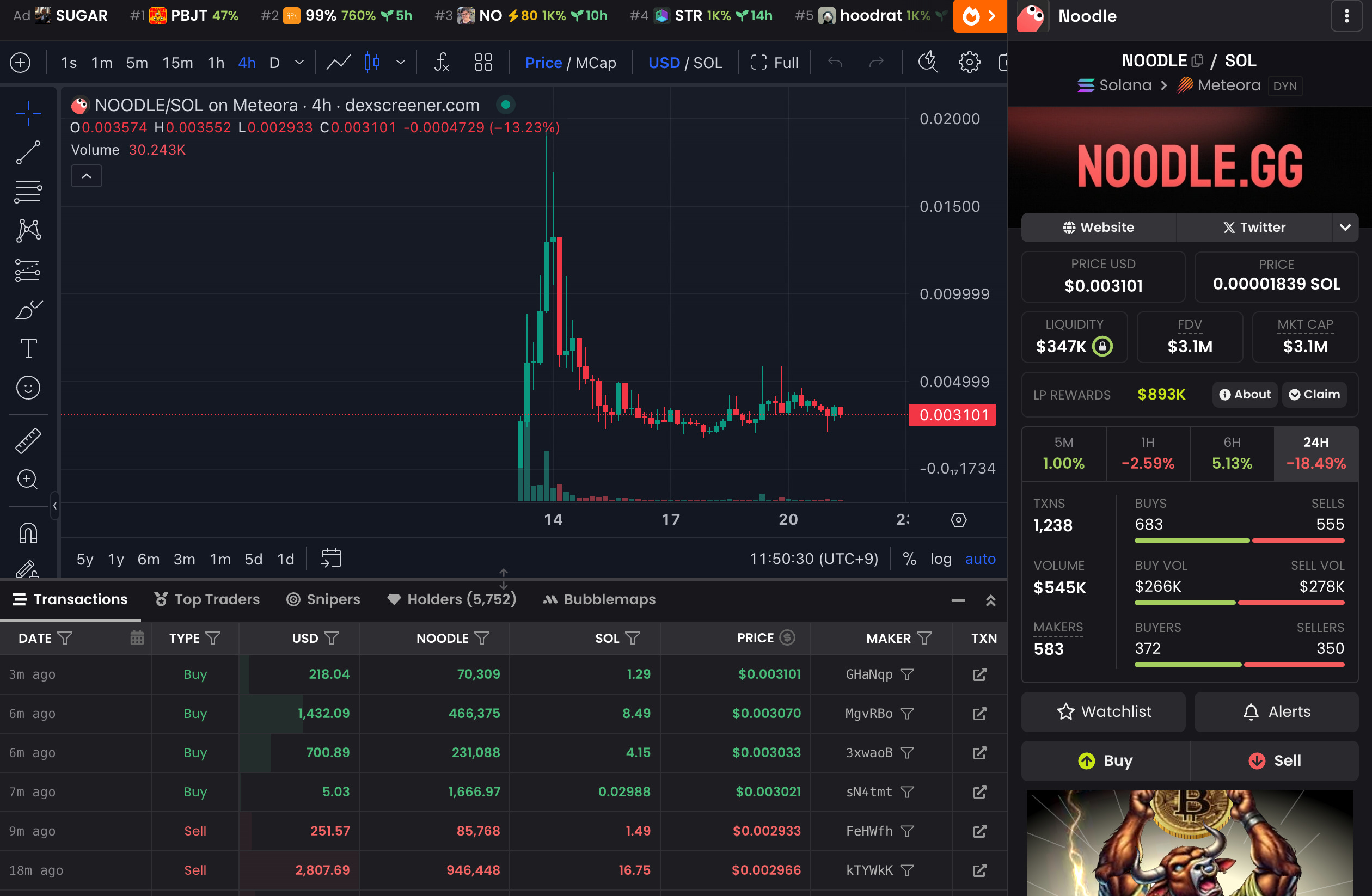 Noodleは「スネークゲーム」にweb3要素を取り入れた対戦ゲームで、プレイヤーは他プレイヤーを倒すとその相手のトークンを獲得できる仕組みになっています。Leiman氏はゲーム内経済を盛り上げるため、Believe上で$NOODLEトークンを発行し、ゲームリリース前からコミュニティに販売しました。