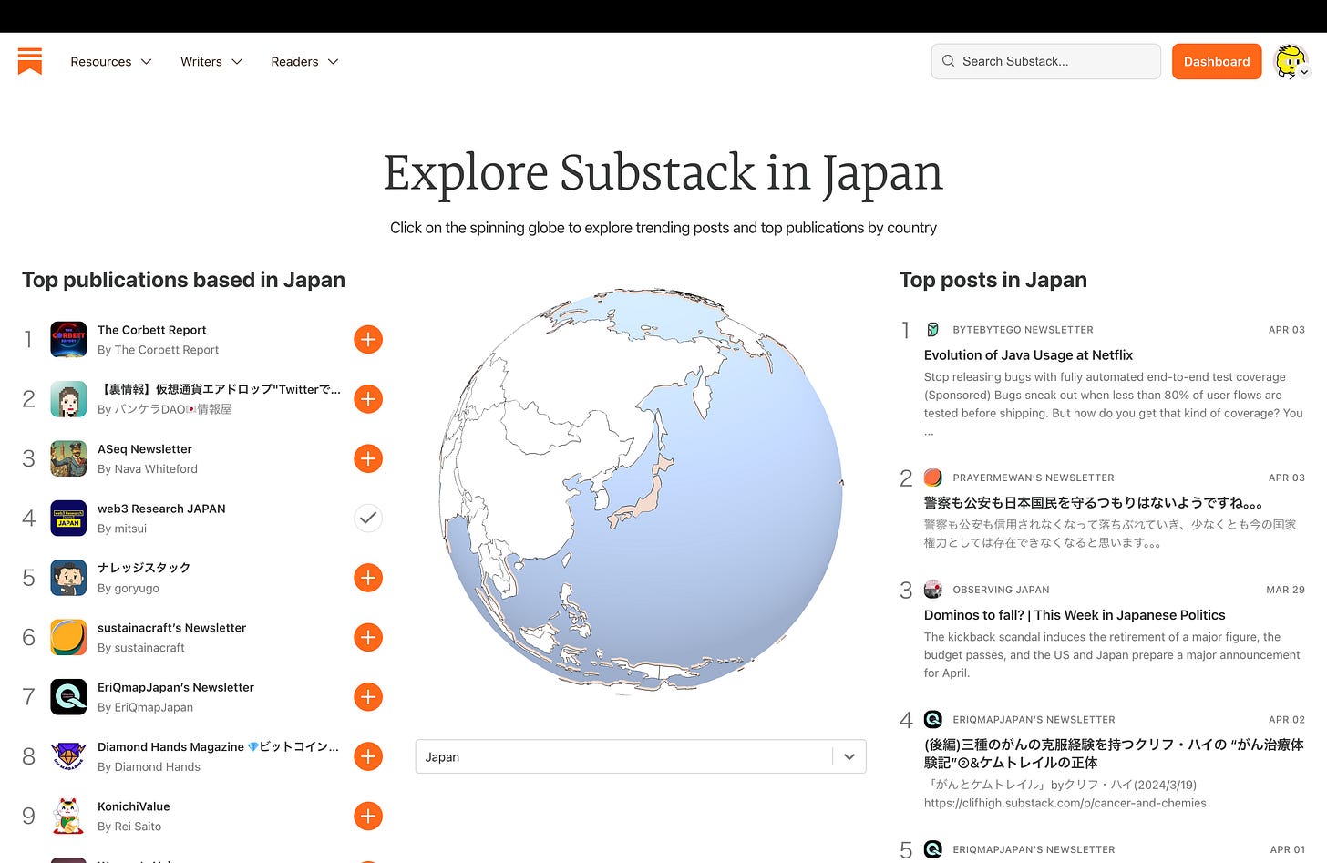 ニュースレターに関する近況報告の最後に、改めてお礼を伝えさせてください。先日Substackに実装された国別の人気ニュースレターでなんと「web3 Research JAPAN」が日本4位にランクインしました!!