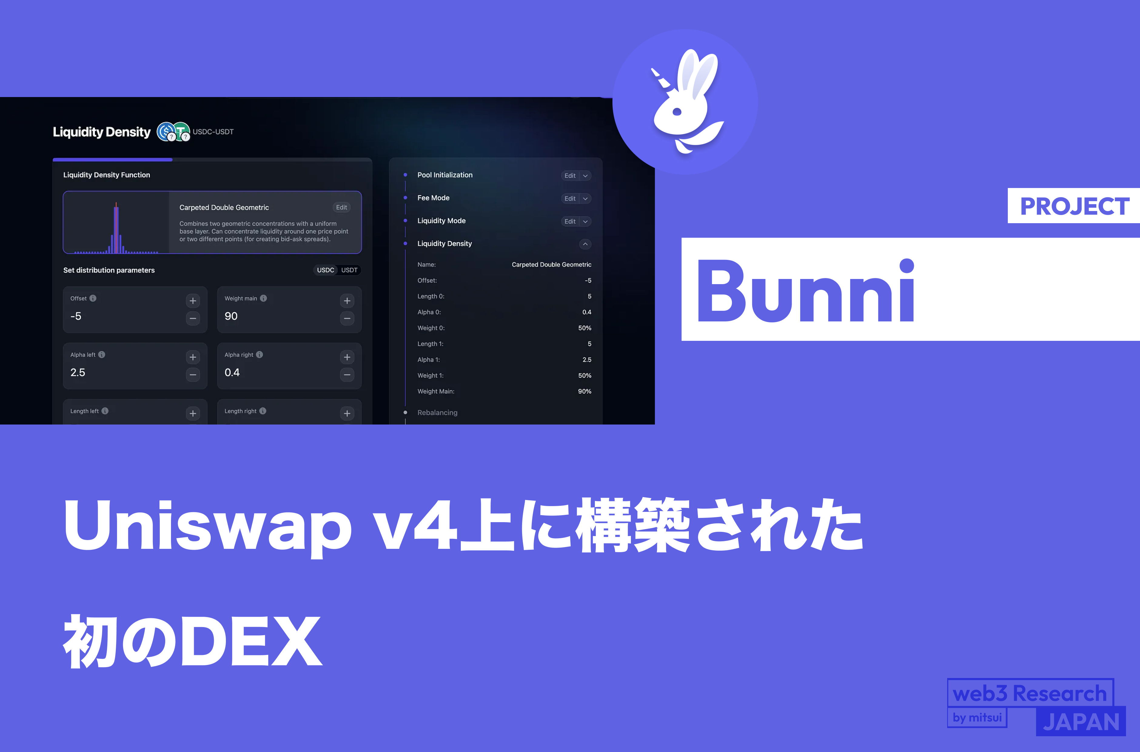 【Bunni】Uniswap v4上に構築された初のDEX / 流動性密度関数 (Liquidity Density Function)による流動性のカスタマイズやアイドル資産の再投資を実現 / 既存の問題を解決しLP提供者の収益を最大化 / @bunni_xyz