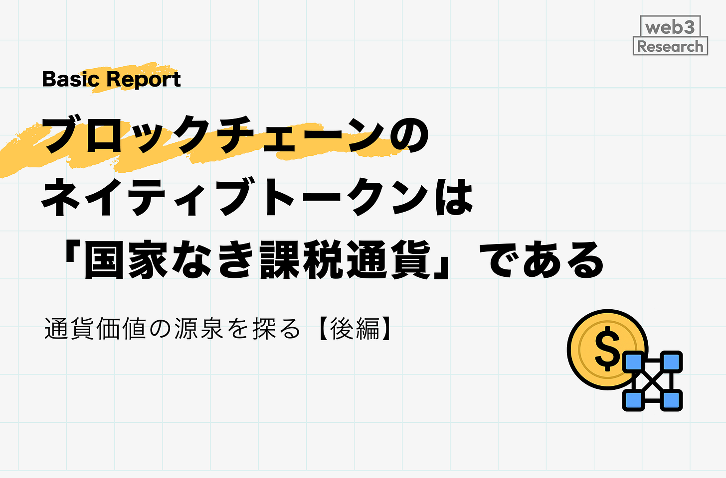 Reportブロックチェーンのネイティブトークンは「国家なき課税通貨」である【通貨価値の源泉を探る:後編】ブロックチェーンのネイティブトークンの時価総額が高い理由を探るmitsuiAug 17, 2025∙ Paid3Shareおはようございます。web3リサーチャーのmitsuiです。毎週土日のお昼にはweb3の基礎の基礎レポートを更新しています。今週は「租税貨幣論」について解説します。ぜひ最後までご覧ください!前編の振り返りネイティブトークンとはガス代は課税に似ている国家通貨とネイティブトークンの比較価格上昇圧力のメカニズムまとめSubscribeThis post is for paid subscribersSubscribeAlready a paid subscriber? Sign inPreviousNext