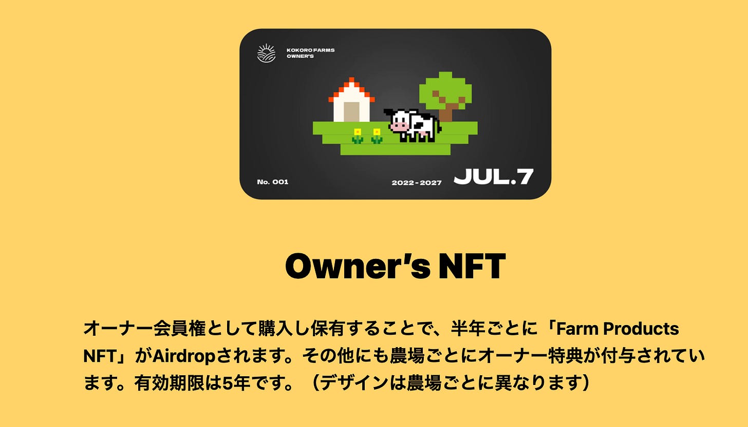 応援したい農場を選んで、その農場のオーナーNFT(5年間分)を購入する。