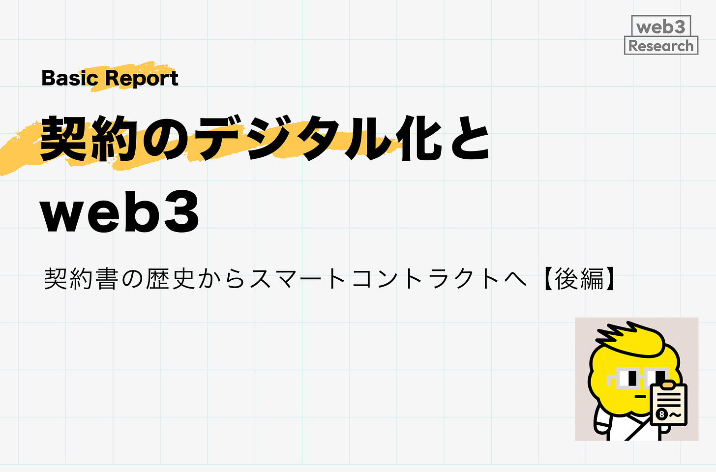 Report契約のデジタル化とweb3【契約書の歴史からスマートコントラクトへ:後編】スマートコントラクトは契約の歴史を変えるかもしれません。mitsuiAug 24, 2025∙ Paid4Shareおはようございます。web3リサーチャーのmitsuiです。毎週土日のお昼にはweb3の基礎の基礎レポートを更新しています。今週は「契約」について解説します。ぜひ最後までご覧ください!電子署名とデジタル契約の時代スマートコントラクトとは?強みと課題まとめ:信頼の進化と新たなパラダイムSubscribeThis post is for paid subscribersSubscribeAlready a paid subscriber? Sign inPreviousNext