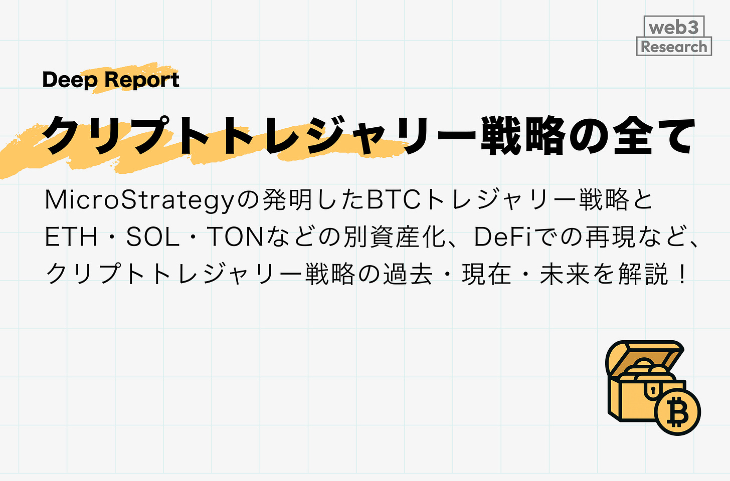 【クリプトトレジャリー戦略の全て】MicroStrategyの発明したBTCトレジャリー戦略とETH・SOL・TONなどの別資産化、DeFiでの再現など、クリプトトレジャリー戦略の過去・現在・未来を解説!