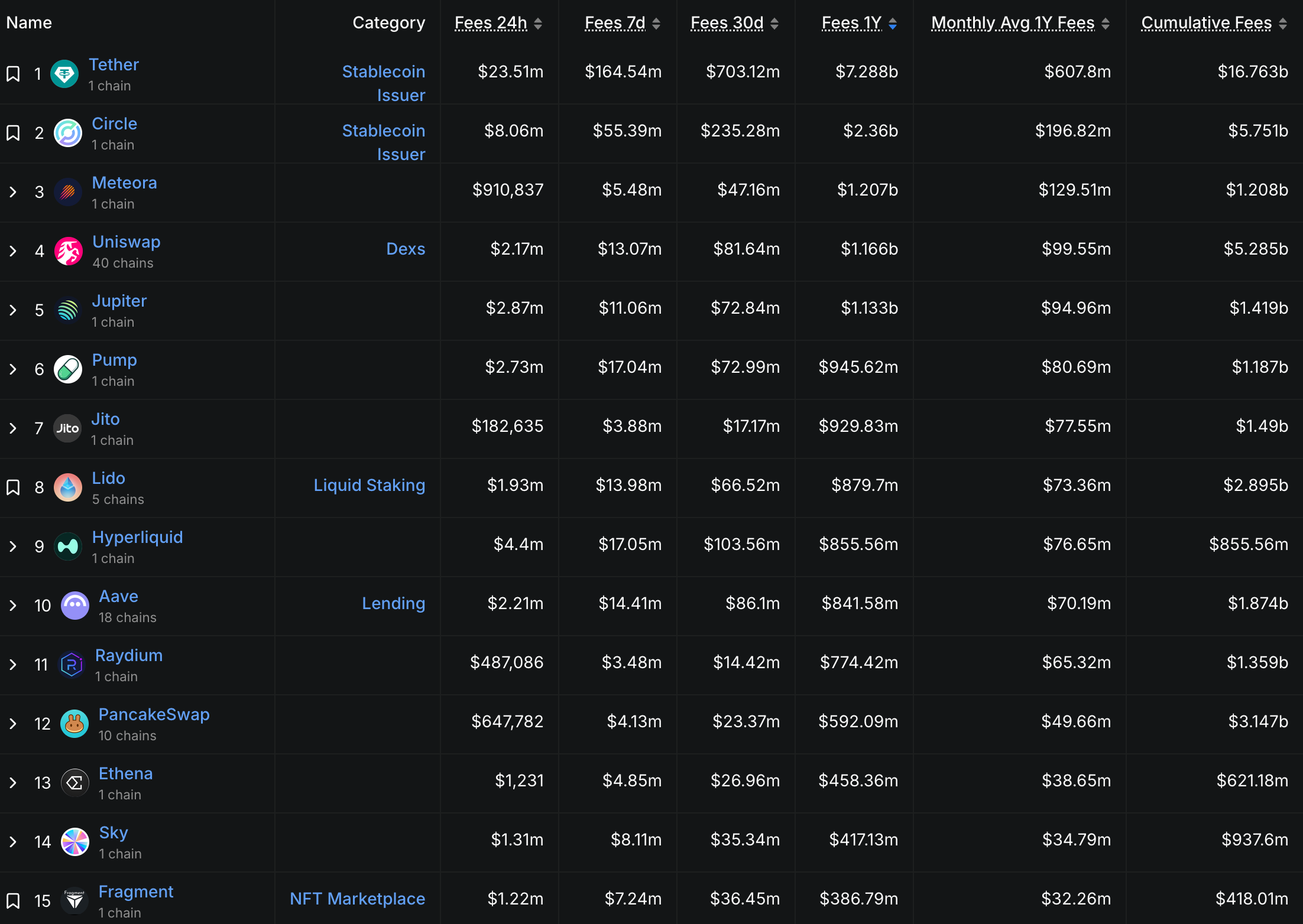 まずは現在のDeFiの勝者を整理してみます。何を持って勝者と呼ぶのか、ここではFeeを軸に勝者と定義します。