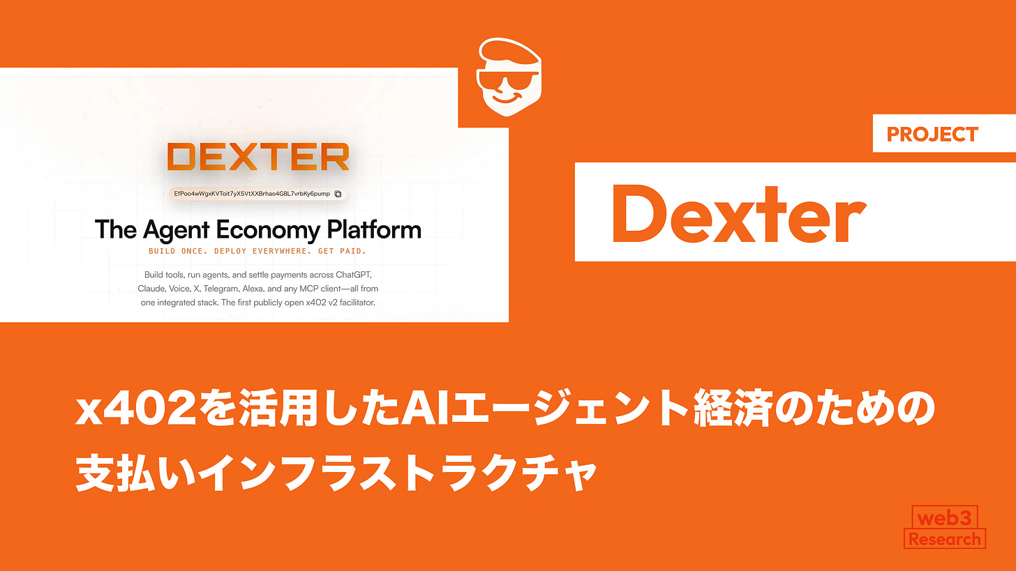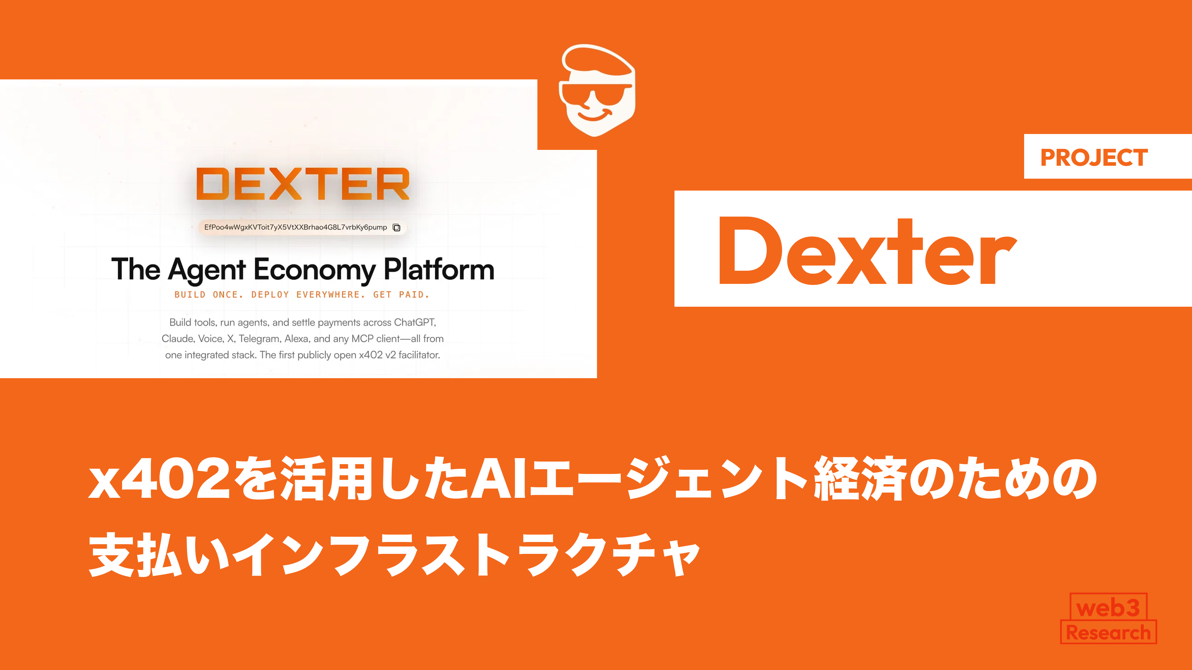 2025年後半にはx402エコシステムで最大級の取引量を処理するファシリテーターの一つとなり、DEXTERトークンもリリースされるなど、DexterはAIが仕事をする世界の共通インフラとして存在感を高めつつある。