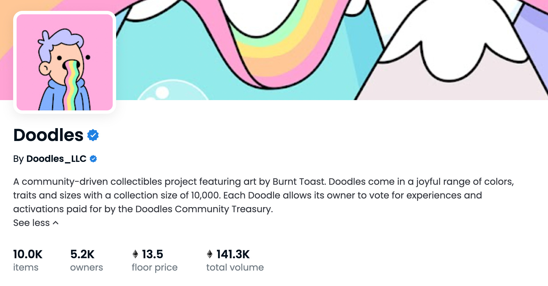 Doodles(ドゥードゥルズ)は2021年10月に1万個のNFTがミントされ、瞬く間に大人気となったコレクティブルNFTです。