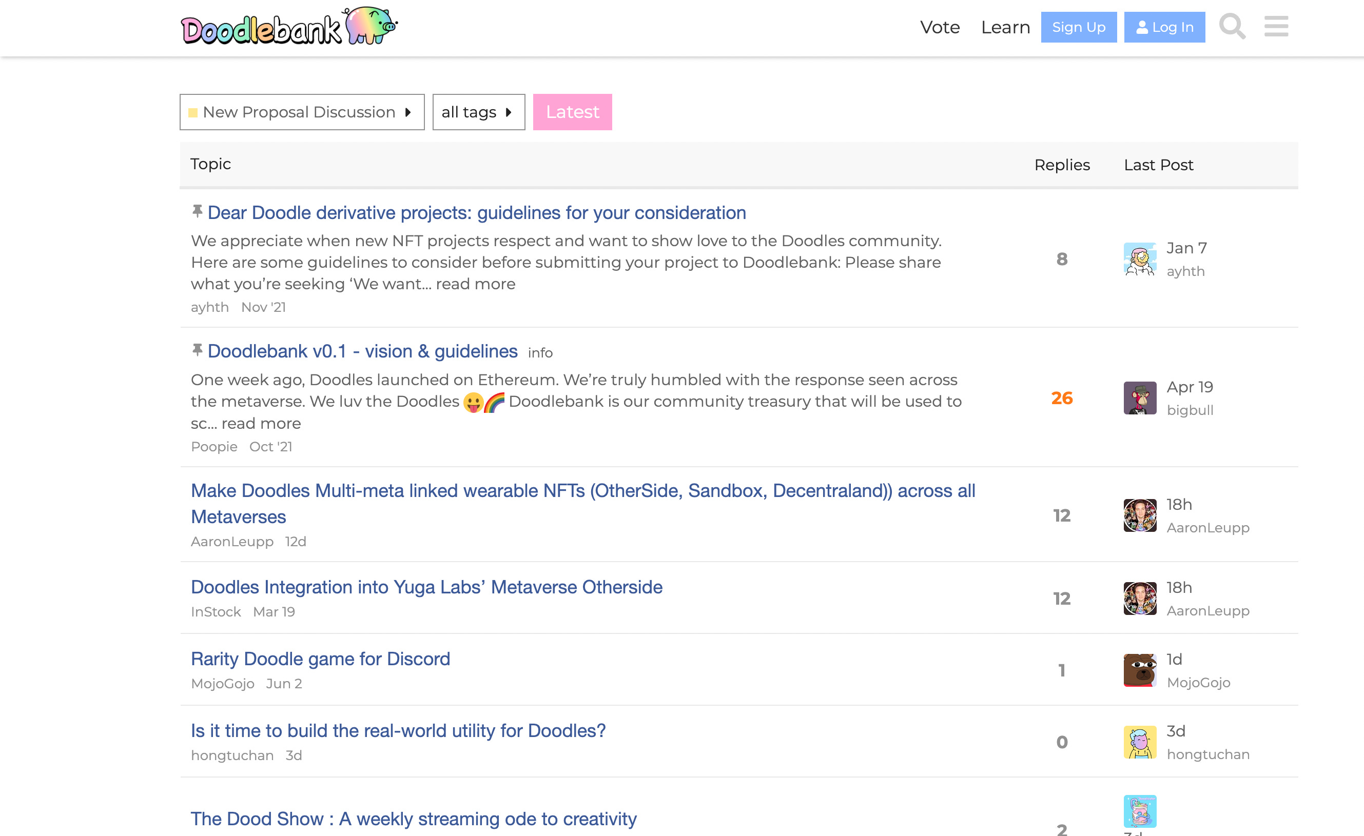 Doodlesにはロードマップが存在せず、全てコミュニティーによって決定されていきます。NFTホルダーが決議権を持ち、提案・投票を実施します。