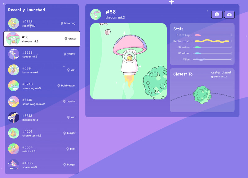 自分のDoodlesとSpace Doodlesを交換でき、一人一つの宇宙船がもらえます。各宇宙船はデザインや背景が異なり、Statsというパラメーターも異なります。まだ具体的な使用用途は公開されていませんが、この宇宙船を使ったDappsやメタバースが今後リリースされることが期待されています。