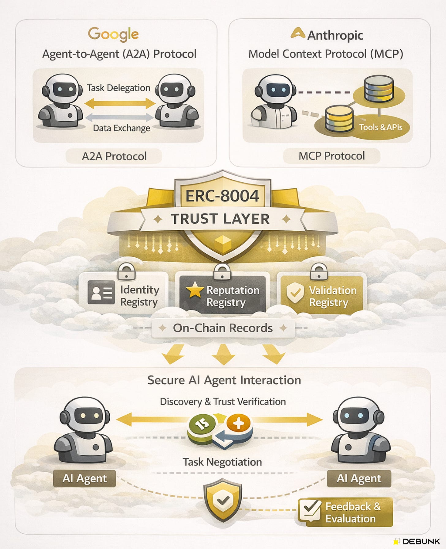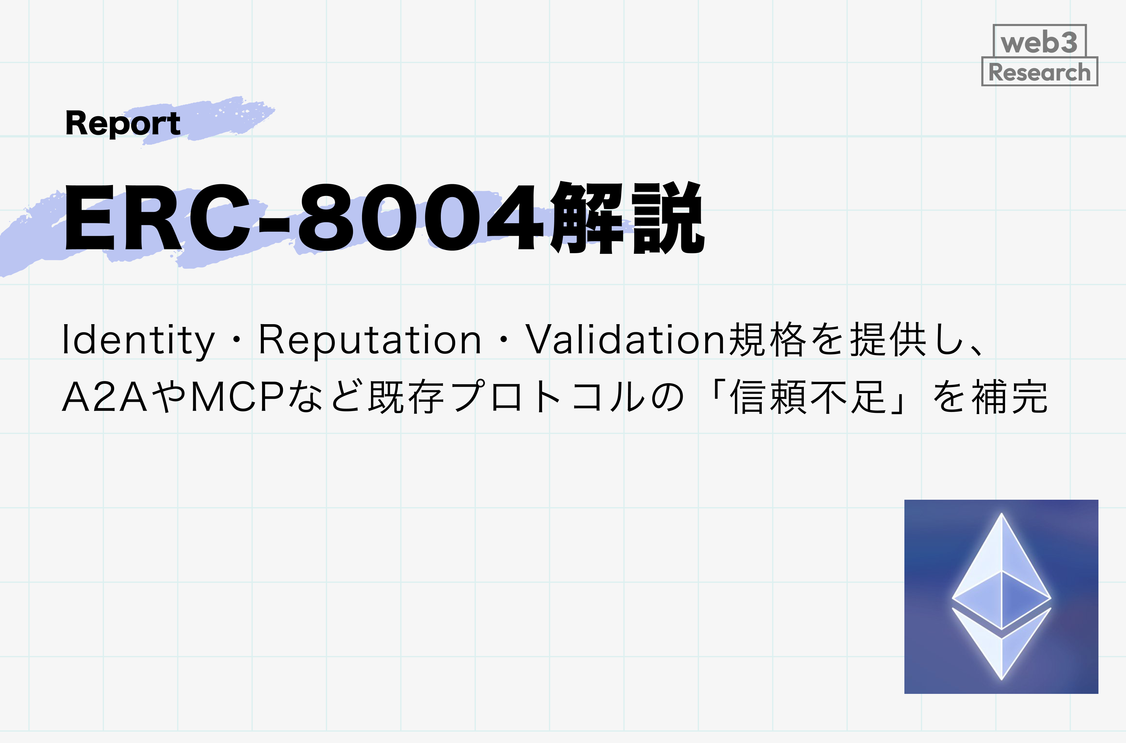【ERC-8004】トラストレスエージェントのための標準規格 / Identity・Reputation・Validationを提供し、A2AやMCPなど既存プロトコルの「信頼不足」を補完
