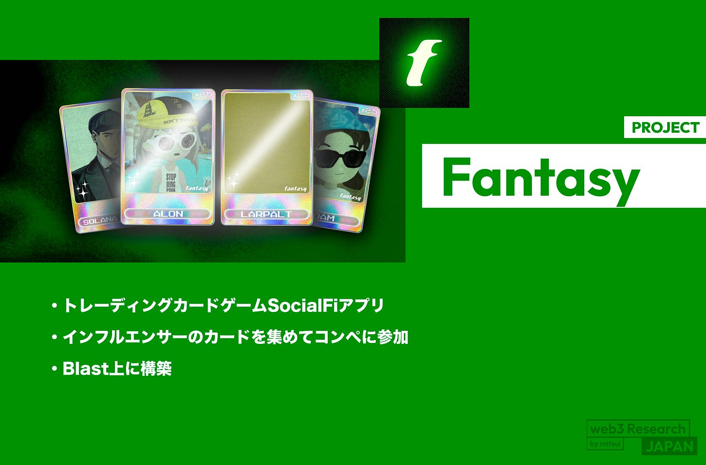 「Fantasy」は、Blast上に構築されたトレーディングカードゲームとSocialFiが融合したアプリです。