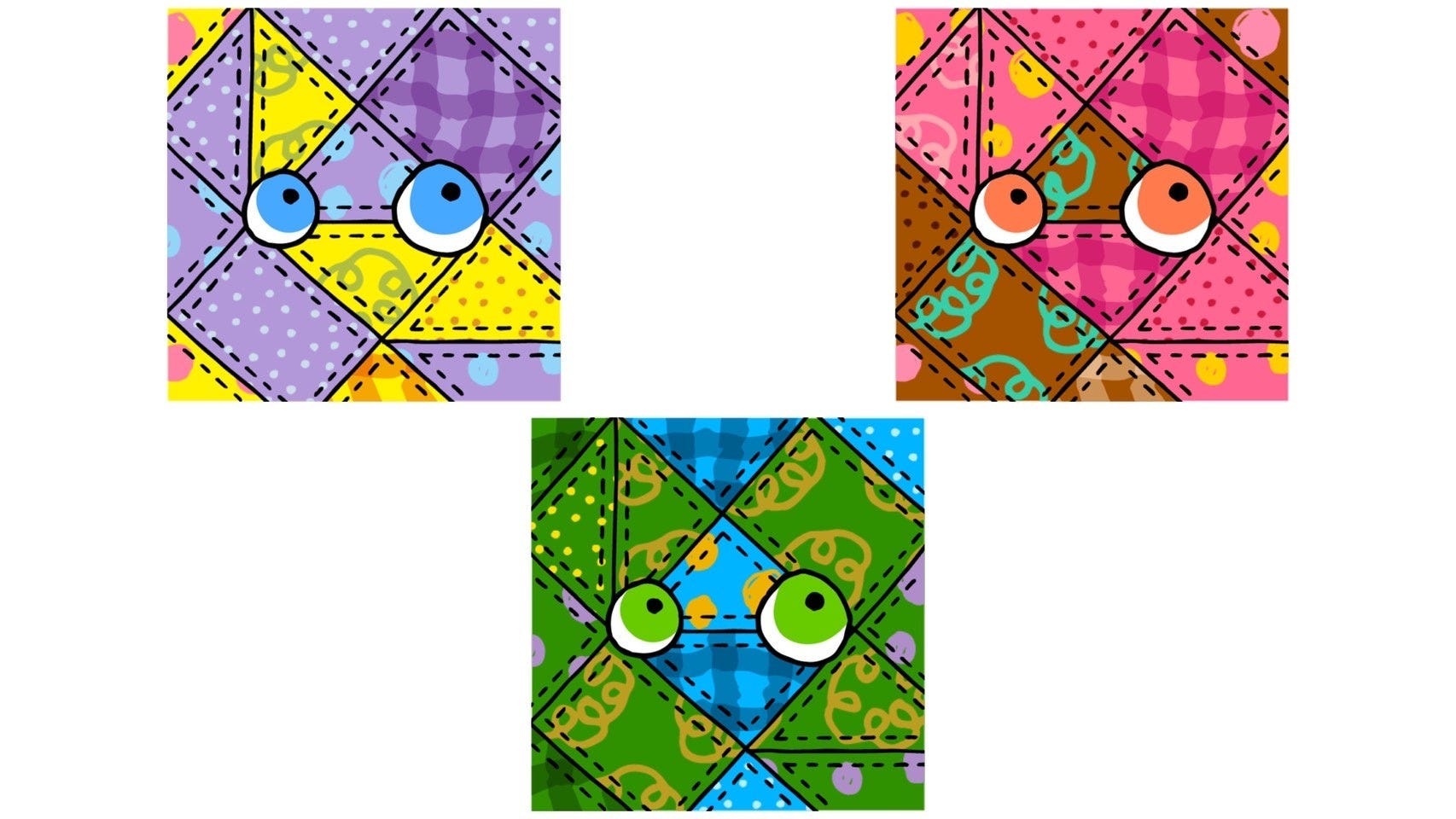 販売された1万点はすべて、パッチワークの色や柄の組み合わせが異なり、ゴミNFTコレクション『Poubelle』と同様の「目」が特徴です。