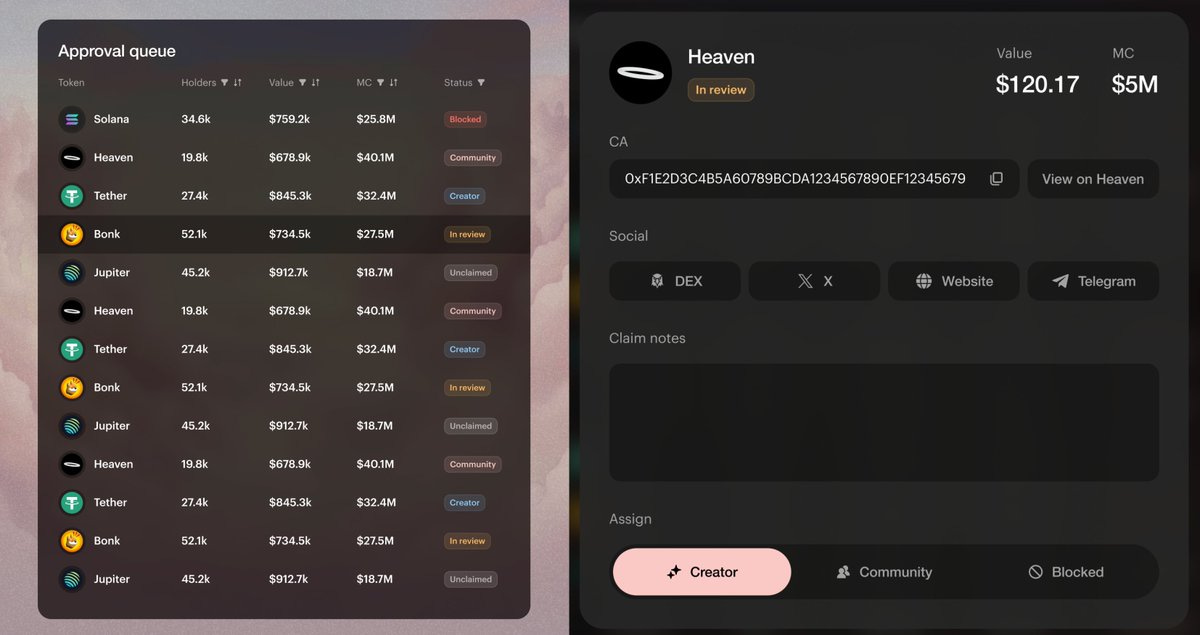 「Heaven」はこうした問題を解決するために設立され、「Permissionlessなローンチ」と「Permissionedな手数料」の両立、そして収益100%をネイティブトークンの買戻し・バーンに活用するという明確なビジョンを掲げています。