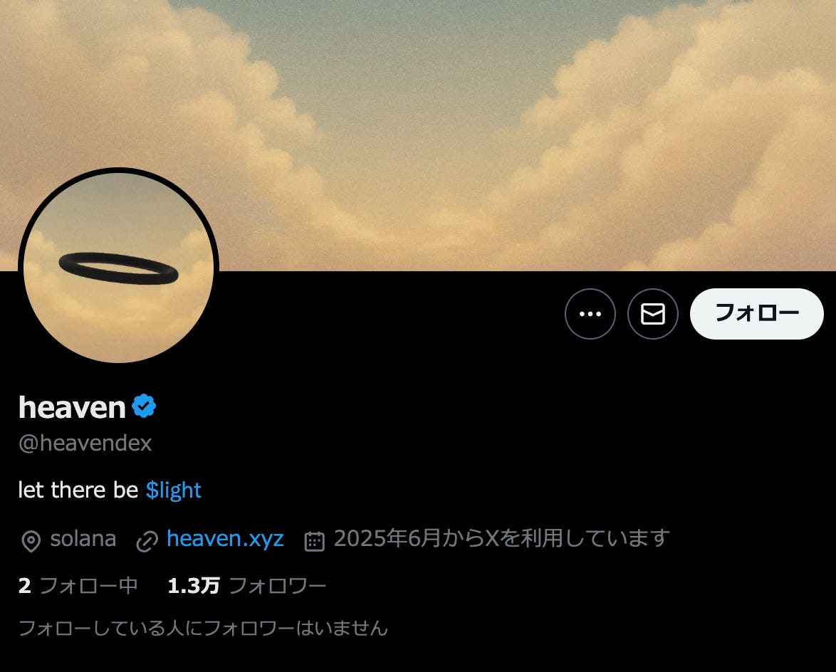 Pump[.]funキラーとして注目を集める存在として「Heaven」が出てきました。Pump[.]funがミーム寄りで、Believeがビジネス寄りで、「Heaven」がその中間のイメージでしょうか。