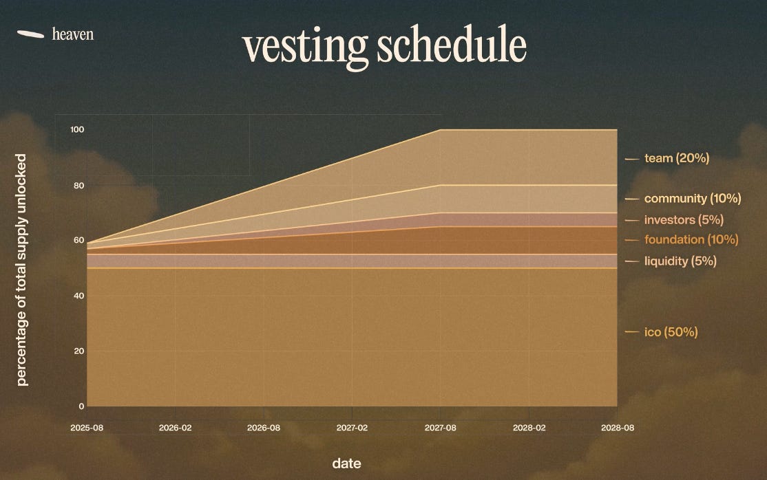 返金処理はセール終了直後の週末に行われ、トークンは販売終了後1~3日以内に各参加者へ配布され、2025年8月11日にHeavenのAMM上で取引開始されています。