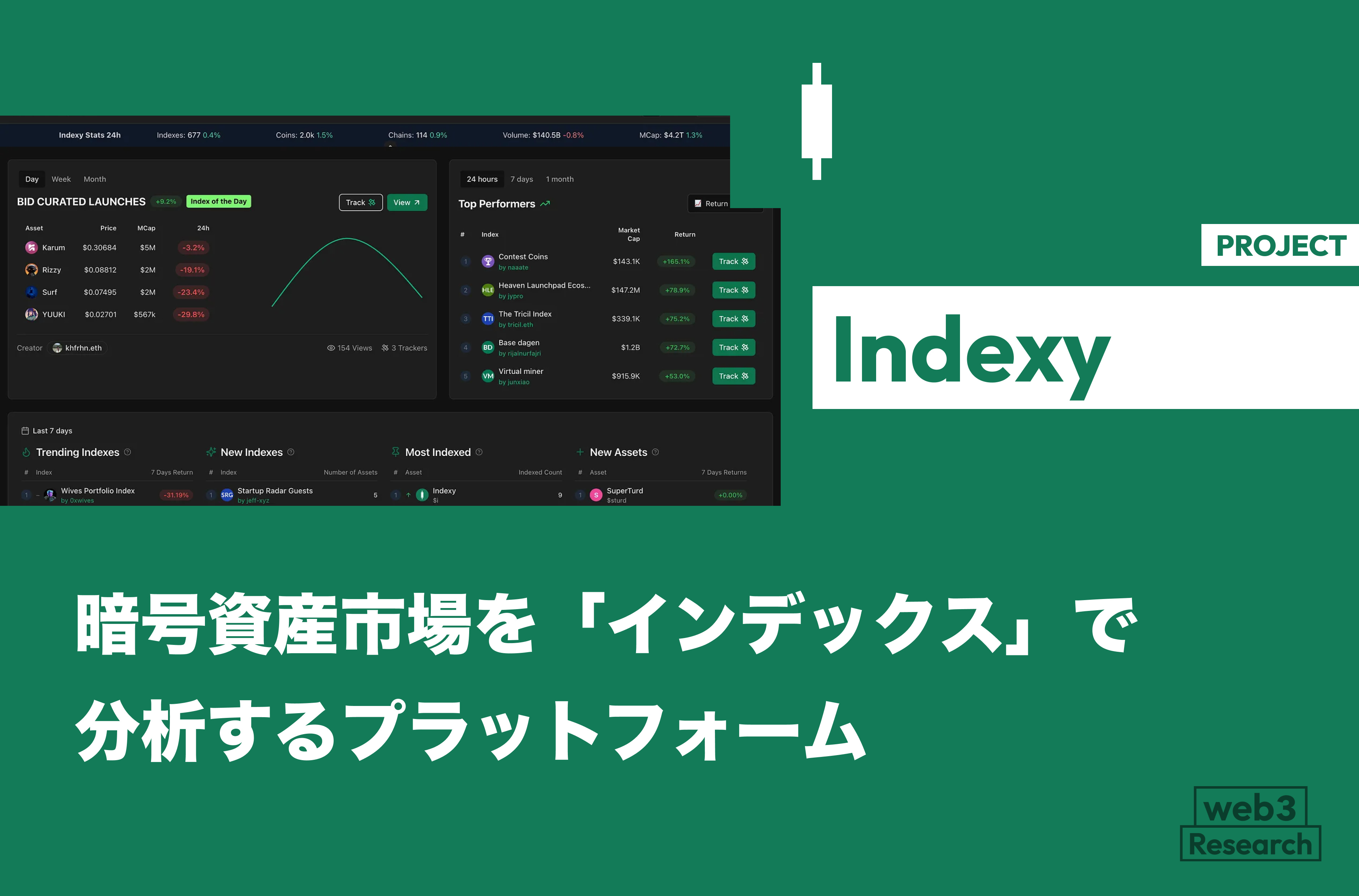Project【Indexy】暗号資産市場を「インデックス」で分析するプラットフォーム / 分散投資や新規プロジェクトの発見をサポート / @indexy_xyz将来的にインデックス投資が可能になるかもしれません。mitsuiAug 18, 2025∙ Paid2Shareおはようございます。web3リサーチャーのmitsuiです。今日は「Indexy」についてリサーチしました。📈Indexyとは?🚩変遷と展望💬金融の全てを代替するSubscribeThis post is for paid subscribersSubscribeAlready a paid subscriber? Sign inPreviousNext