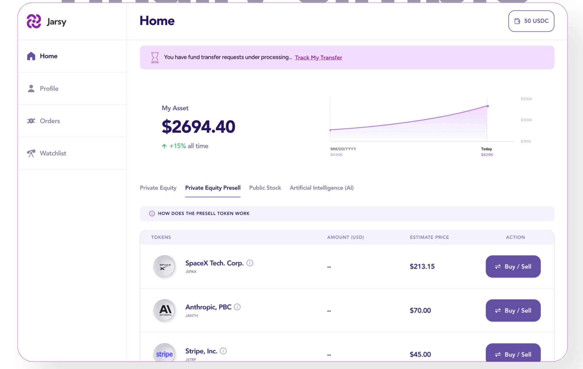 【Jarsy】トークン化された未上場株に投資することを可能にするプラットフォーム / 10ドルから、SpaceX、Anthropic、Stripe等の未上場の株式に投資 / @JarsyInc