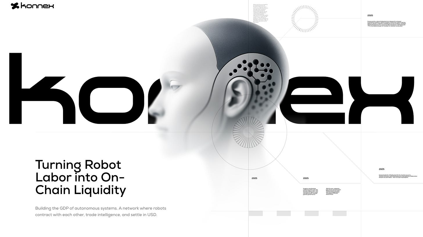 「Konnex」は、ロボットによる物理作業とブロックチェーン技術を融合させたプラットフォームです。ロボットがオンチェーンのスマートコントラクトにデジタル署名して仕事の契約を交わし、タスクの受発注から結果検証・決済までを自律的に行えるよう設計されています。