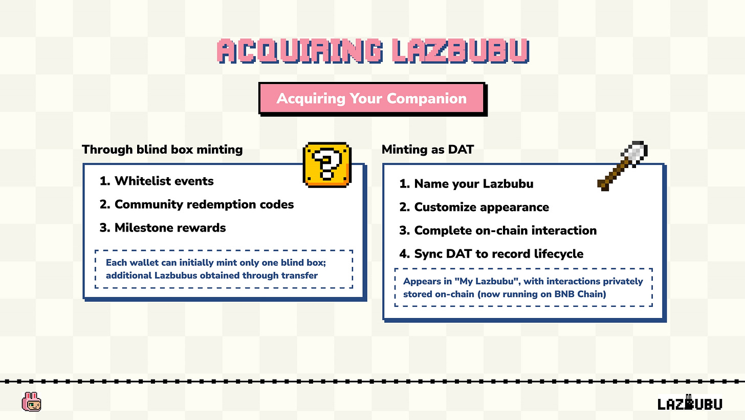 ユーザーは、以下の方法でブラインドボックス経由でLazbubuを入手できます。