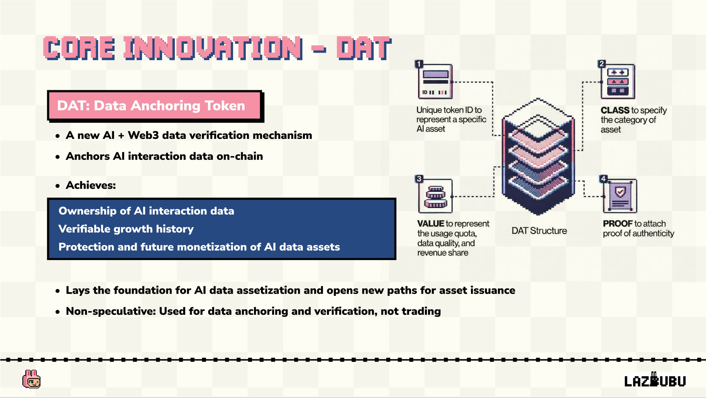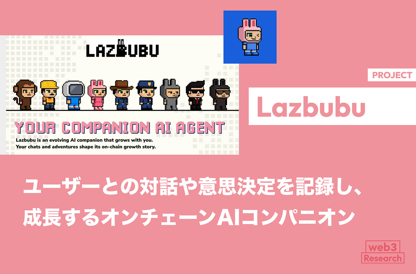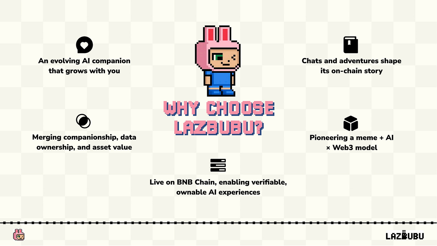 【Lazbubu】ユーザーとの対話や意思決定を記録し、成長するオンチェーンAIコンパニオン / DAT(データアンカートークン)機構を利用 / @LazbubuAI