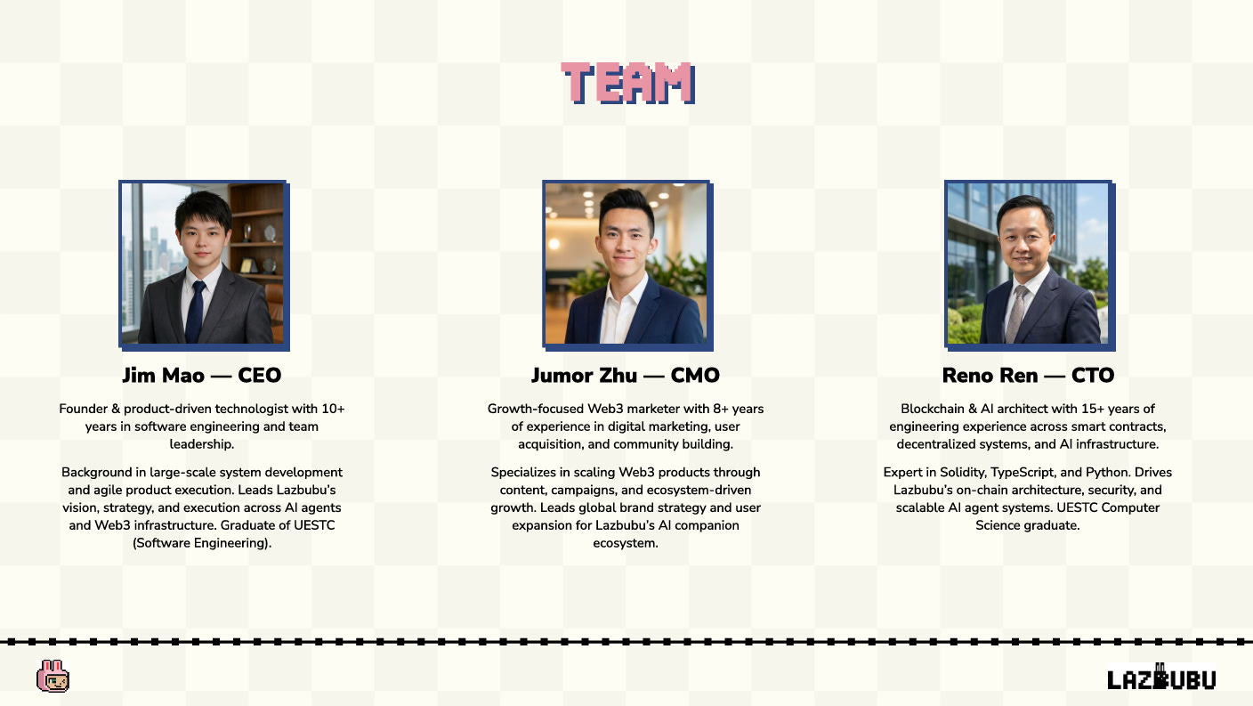 LazbubuはLazAI Networkと呼ばれるプロジェクトチームによって開発・運営されています。2025年に創設された比較的新しいスタートアップで、ブロックチェーンとAI技術の融合に特化したメンバーが集まっています。
