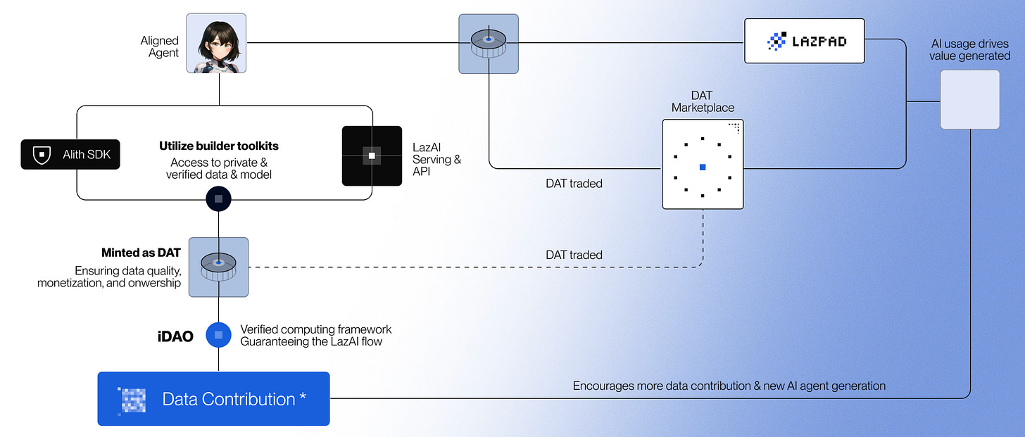 データはユーザーが所有し、LazAI社が構築するDATネットワーク内で自律エージェントとしての発展が期待されています。