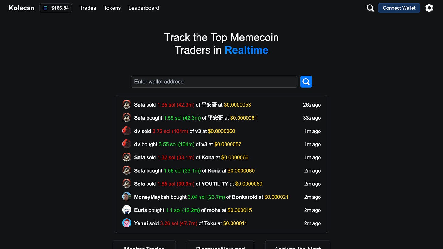 KolscanはSolanaチェーン上で、トレーダーのウォレット活動をリアルタイムで分析・可視化するインフラ。特にKOLの動向監視に特化。