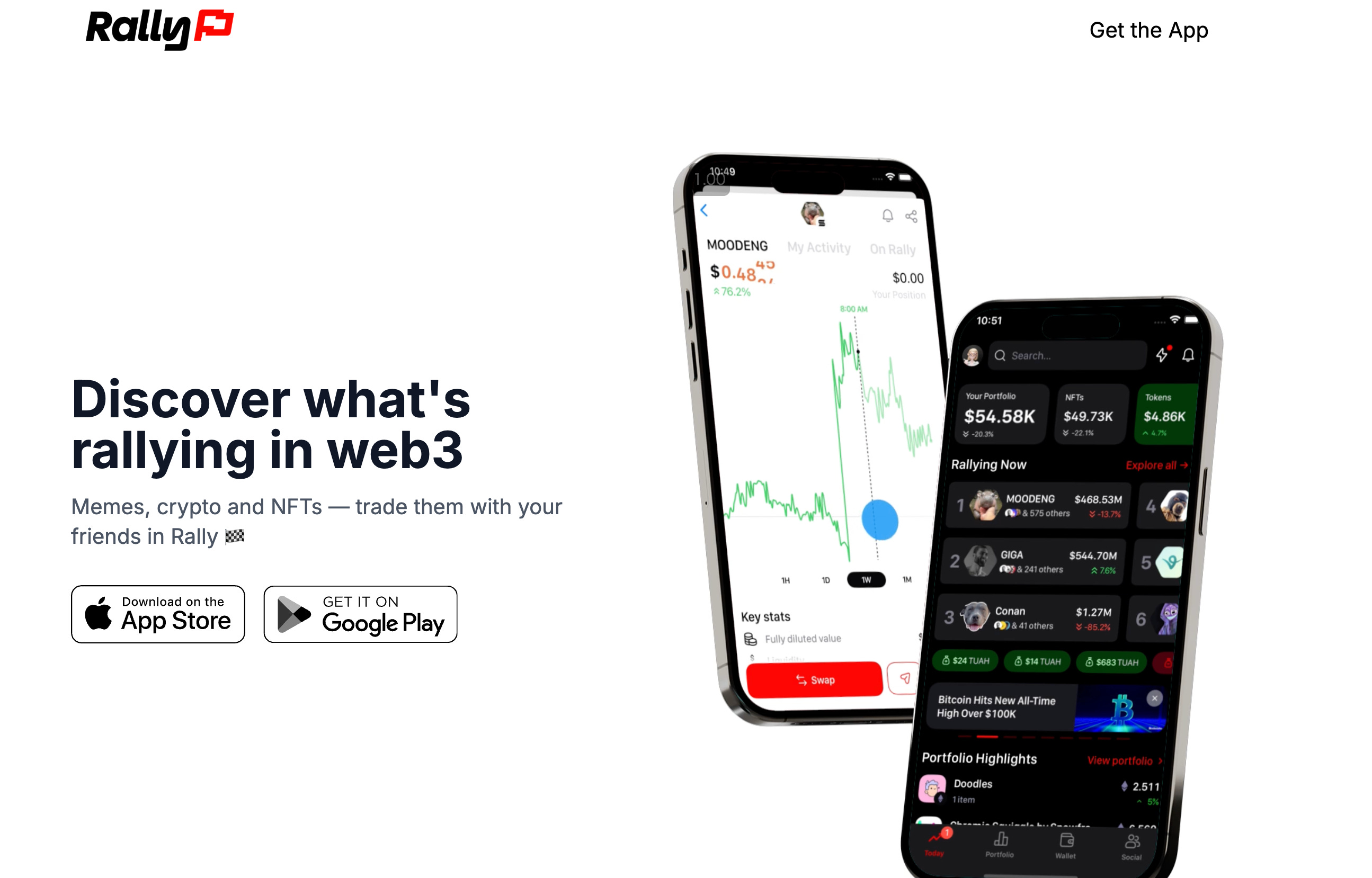 Rallyはweb3モバイルウォレットおよびポートフォリオアプリで、旧称「Floor」。NFTを中心に始まり、現在はミームコインやトークンの追跡、トレードまで対応。