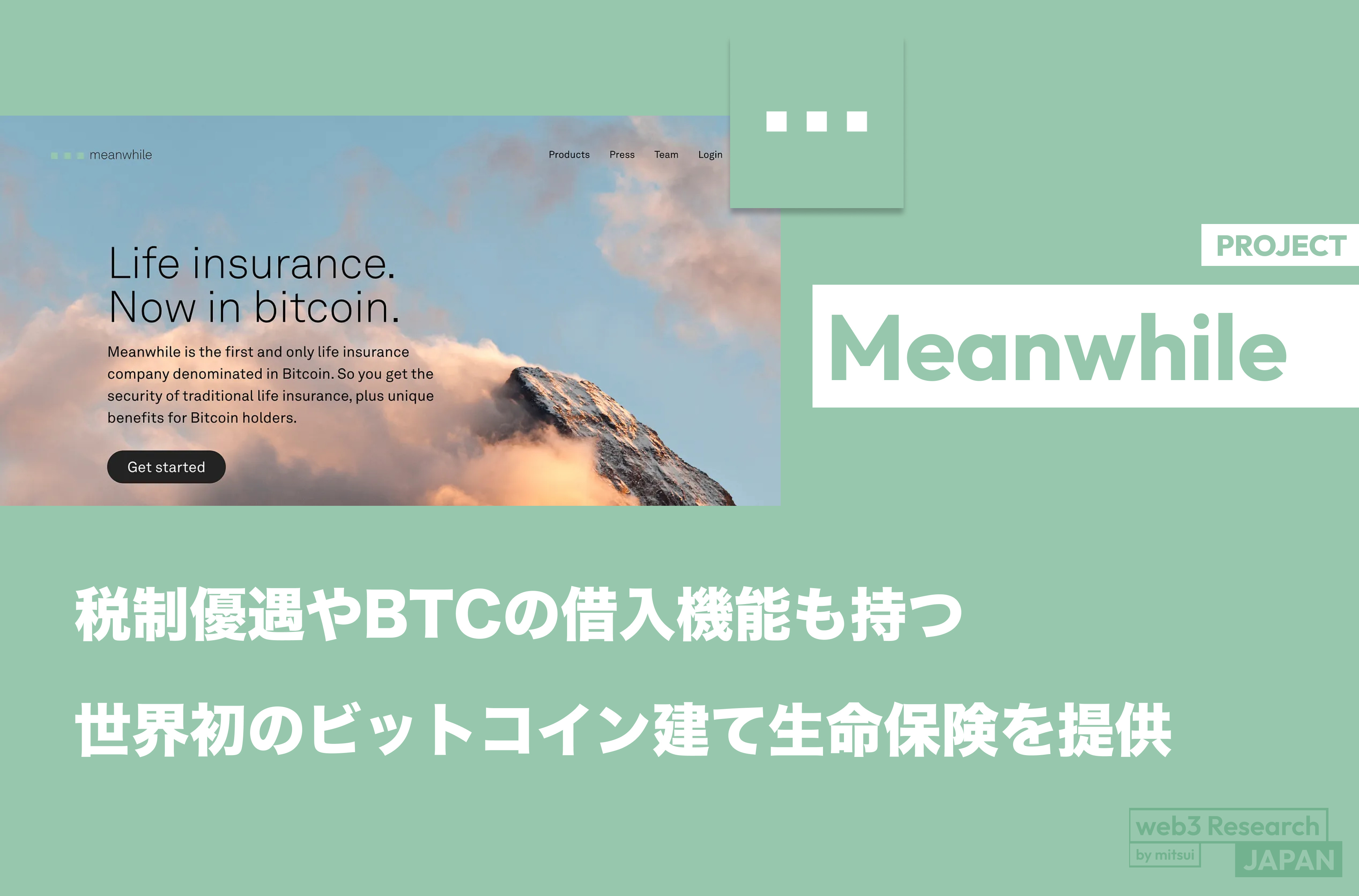 「Meanwhile」は、世界初のビットコイン建て生命保険を提供するプロジェクトです。従来の生命保険では保険金が法定通貨で支払われますが、Meanwhileでは保険料の支払いから将来の給付金に至るまですべてビットコインで行われます。