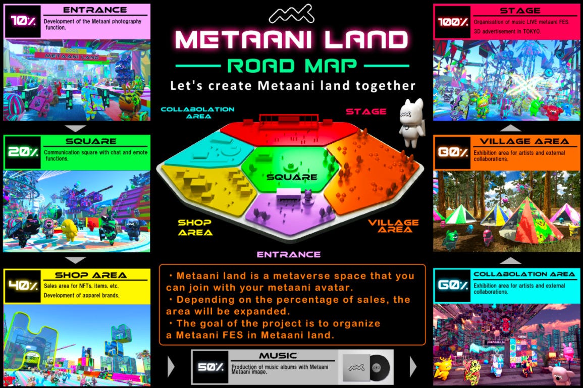 また、Metaani landの開発はNFTの販売状況と比例して徐々に開発が進んでいくことがロードマップとして明かされています。