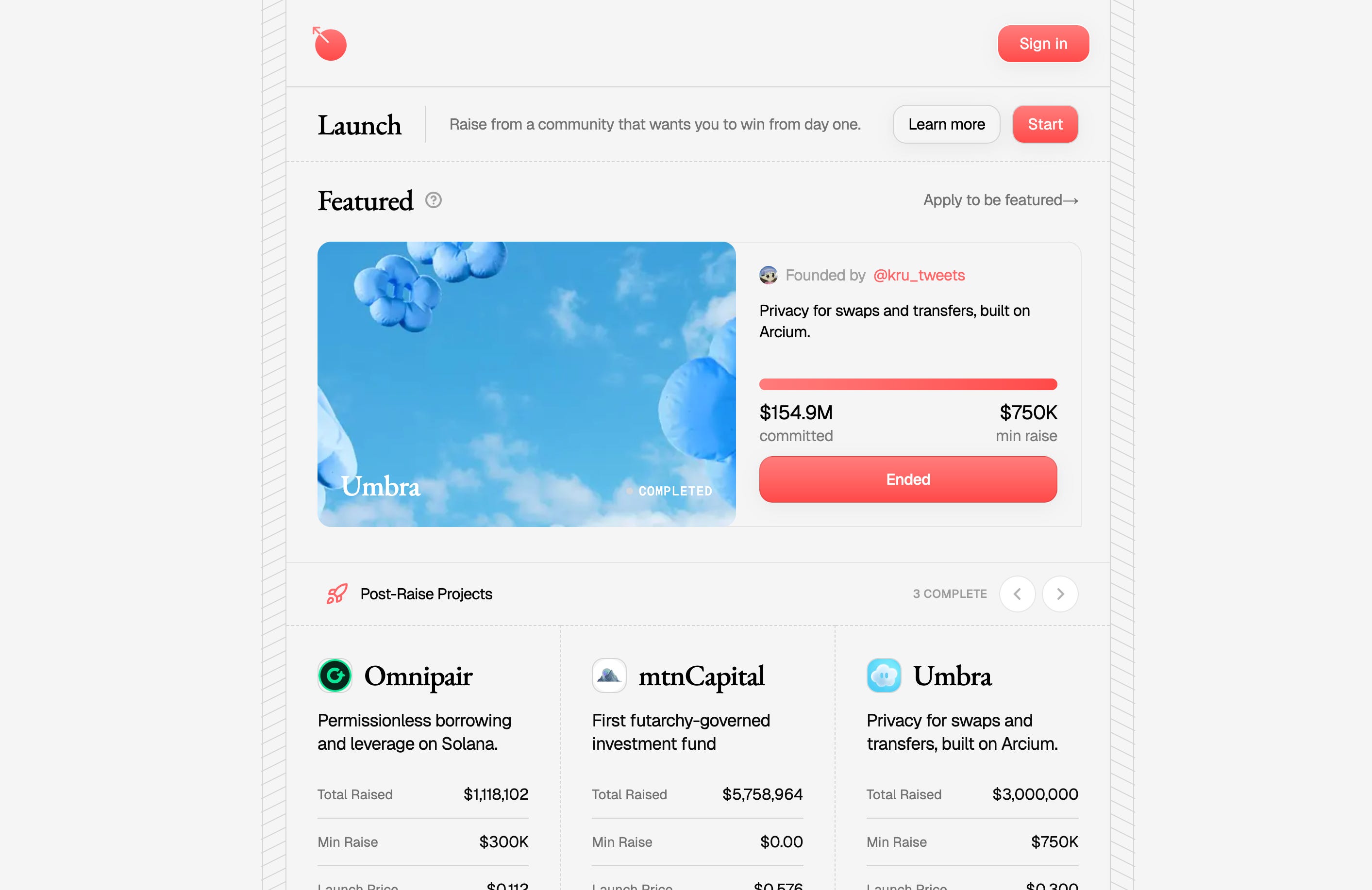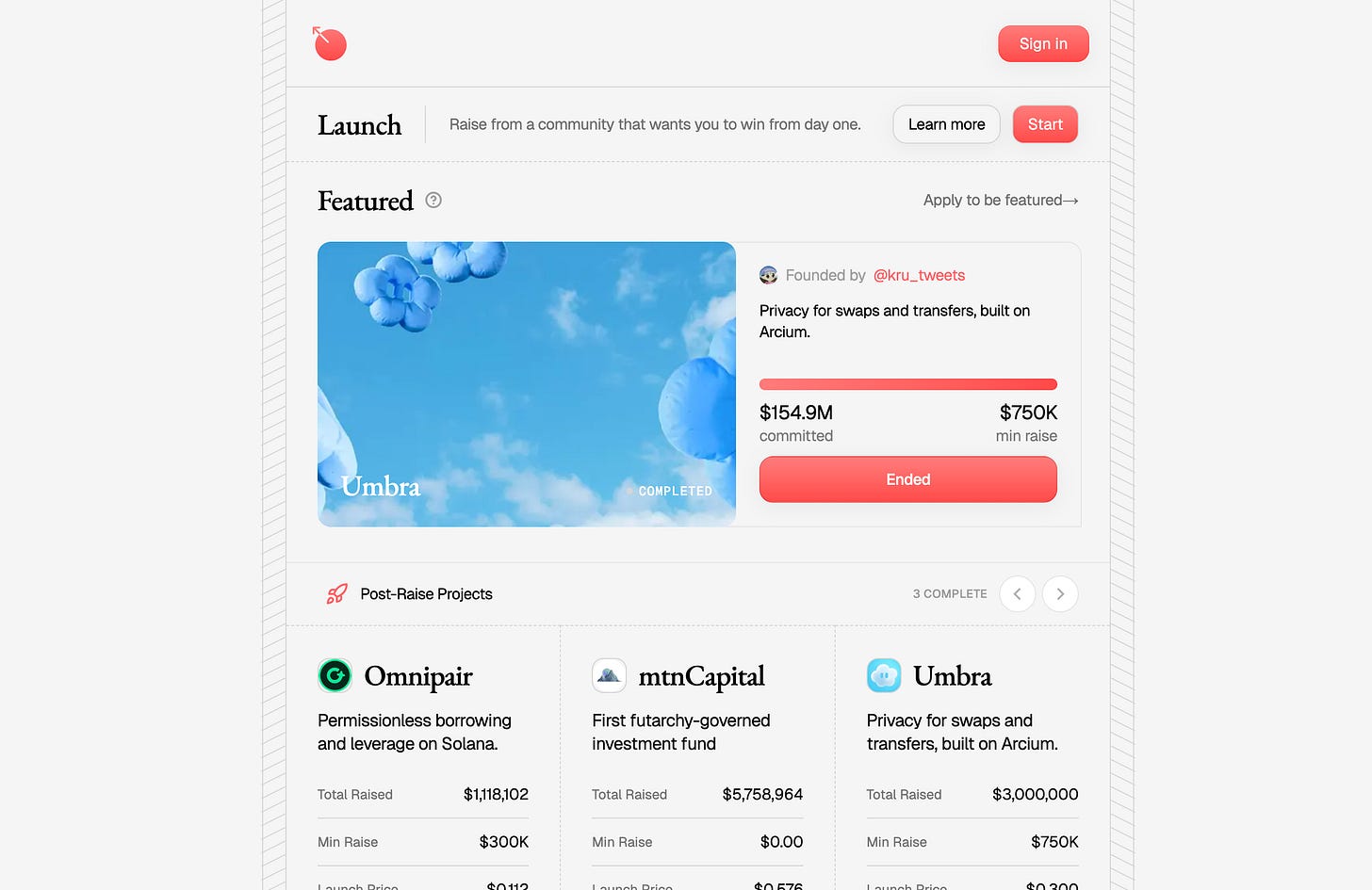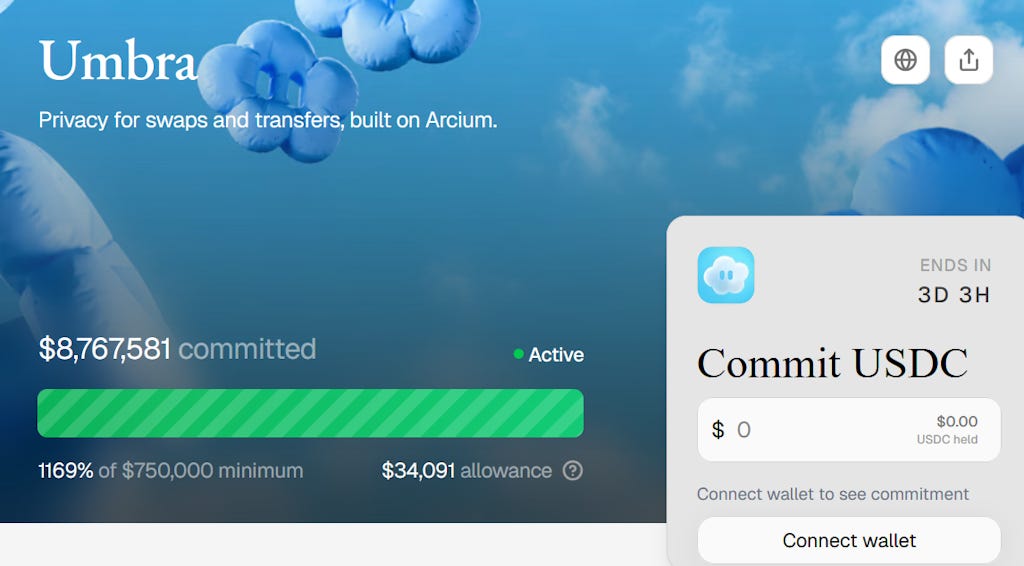 その第一弾プロジェクトであったUmbraの資金調達は2025年10月初旬に開催され、目標額75万ドルを1,169%超過して応募される人気となりました。