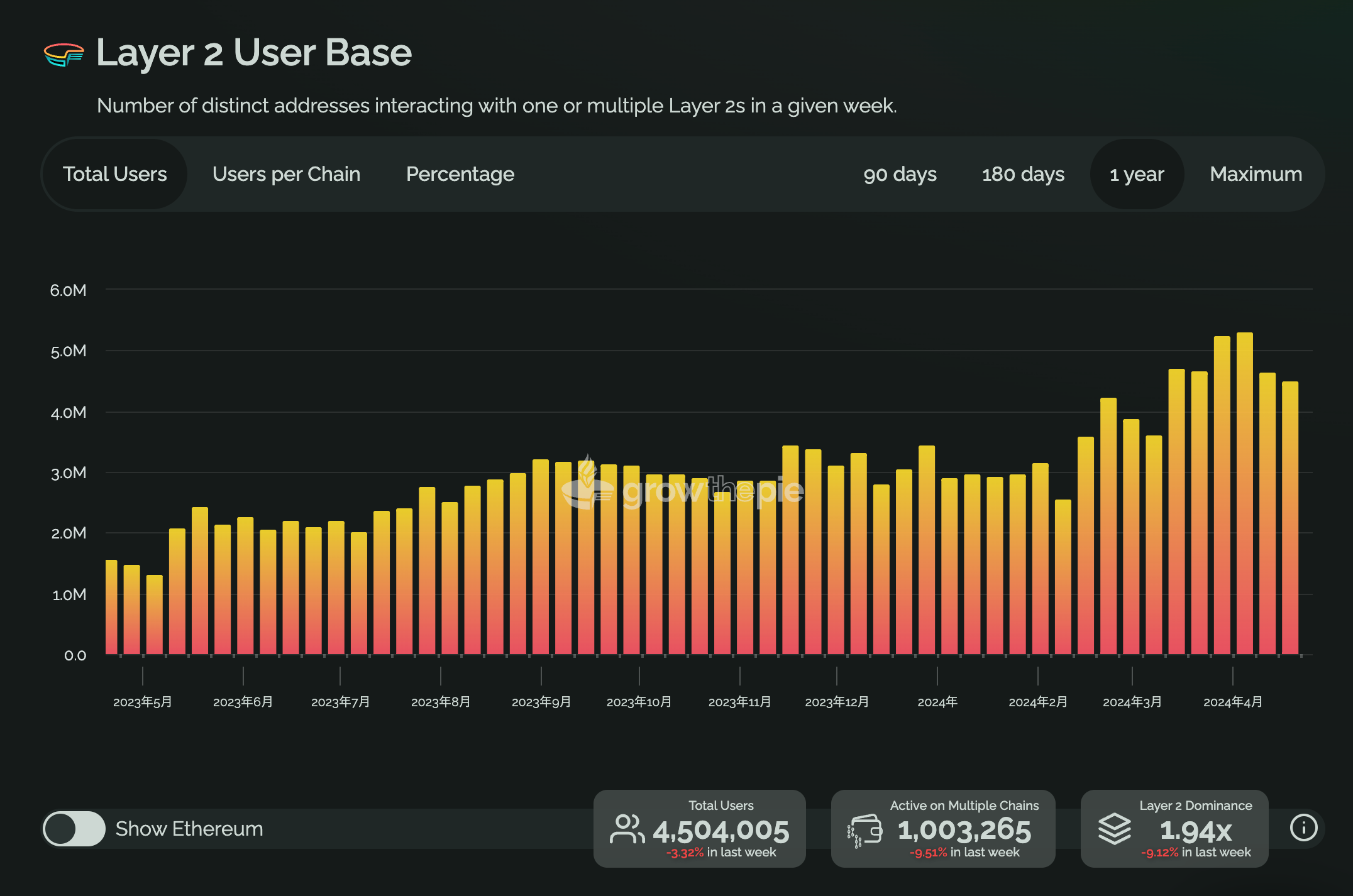 ユーザー数は少し下がっていますが、TVLは軒並み上昇しており、全体としても上昇傾向にあります。